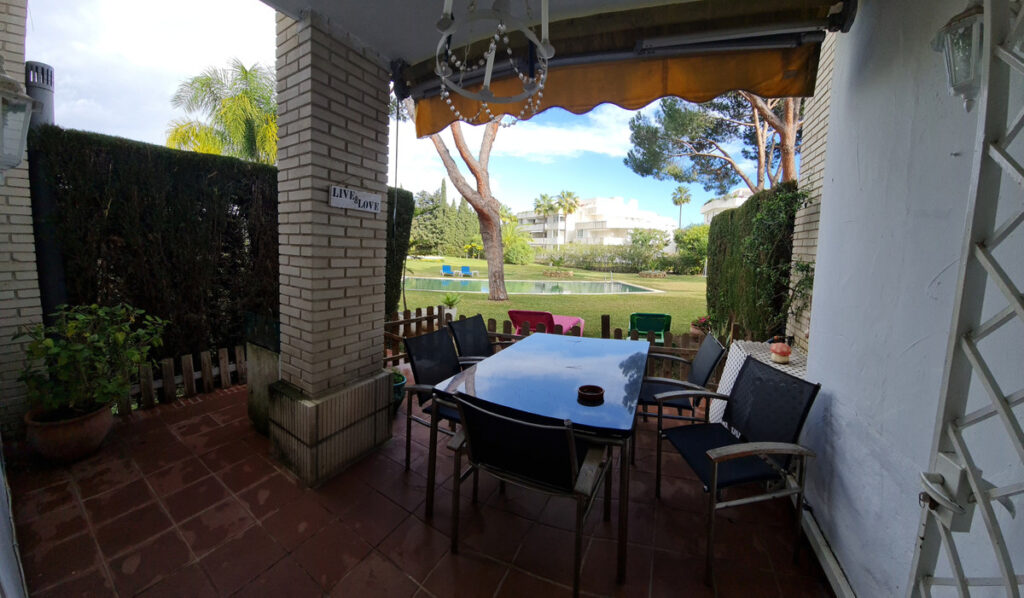 Surrounded by 12.000 m2 of gardens for only 12 properties and in front of las Brisas Golf. This lovely , 3 bedrooms duplex with 2 bahrooms and guess toilet .Offers you communal pool and gardens, to enjoy "the golf-valley way of life". Air cond all the rooms South and west orientated.Electric Windows Fireplace . .Parking inside of the gated complex. Cousy place to live very ,quiet and walking distance to las Brisas golf corse and los Naranjos Golf corse, close to Puerto Banus.