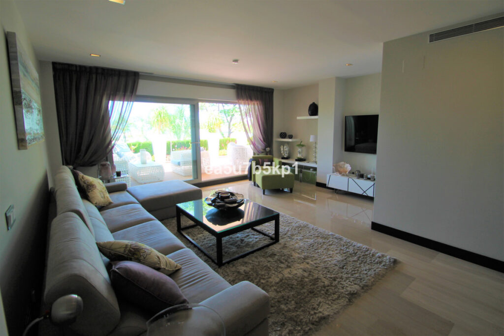 Amazing and exclusive ground floor apartment located in the prime luxury gated development in Benahavis municipality. This beautiful home consist of an ample and bright lounge – dining room, a modern and fully fitted kitchen, 2 guest bedrooms which one of them is with en-suite, a family bathroom and finally a large master bedroom with dressing room, private bathroom and with acess to the large terrace ideal for entertainment or enjoying al fresco dining with family and friends. The development itself is highly sought after, being one of very few on the coast with this design. There are two communal swimming pools surrounded by stunning manicured gardens, 24h security, underground parking, storeroom and just 600m away from the local commercial centre in the award winning La Heredia, where you will find a bakery, butchers, a popular bars and restaurants.