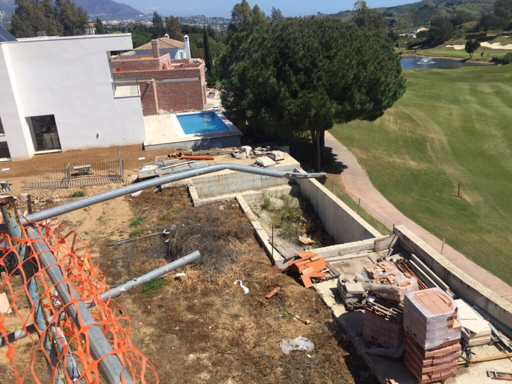 Two fantastic plots on the first line of Golf, with a building license and a project for a large unfinished villa.
