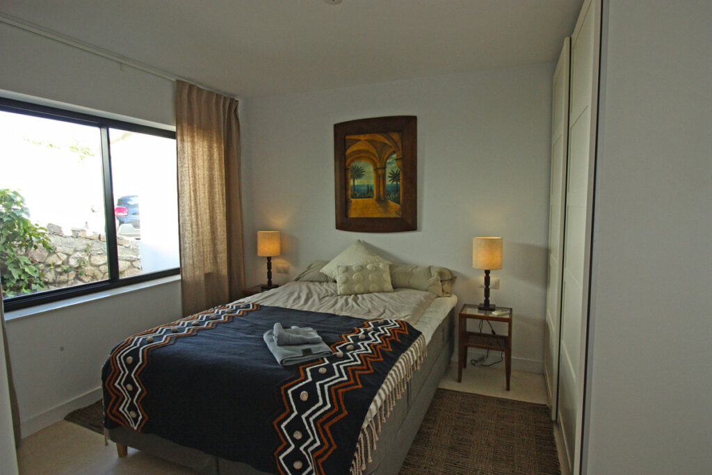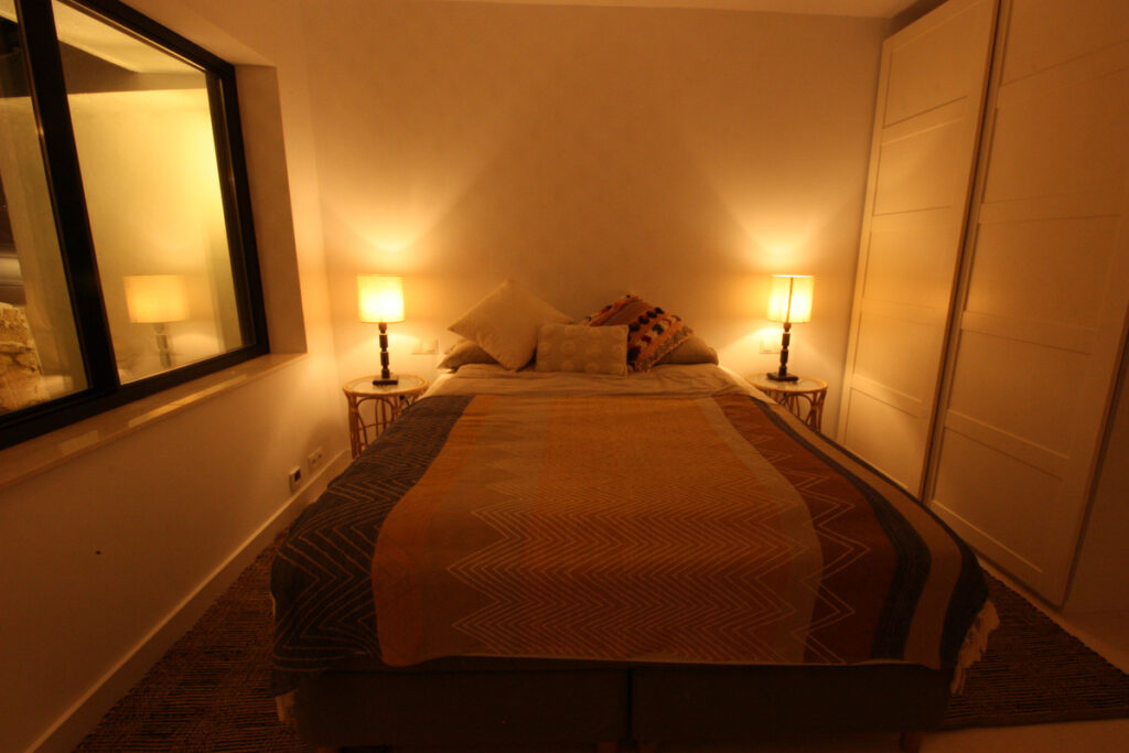 The main house has 3 bedrooms, 2 bathrooms and a big kitchen facing the front terrace, all in one level and connected to the pool area. Under the terrace there is an annex bedroom of aprox 25m2 with its own small chill out terrace, and en suite bathroom.