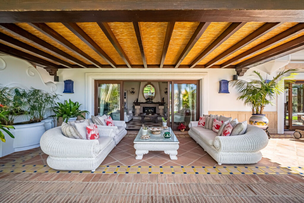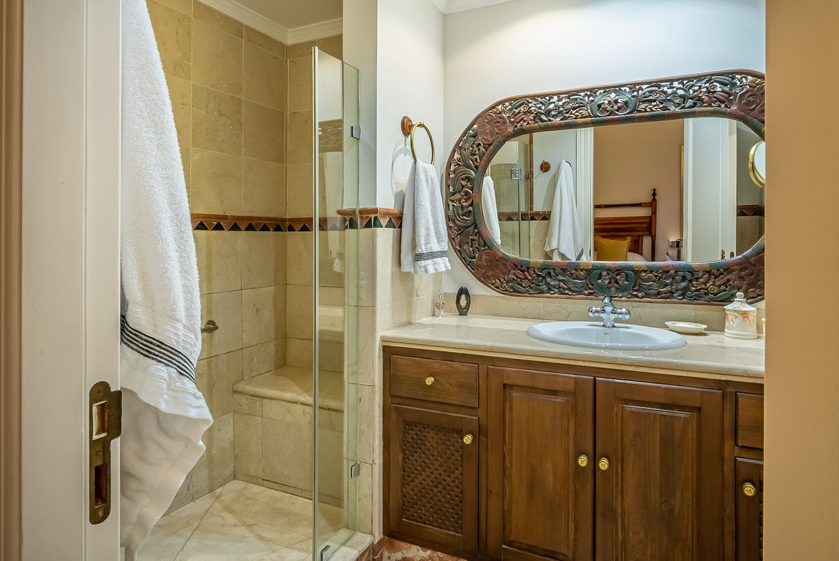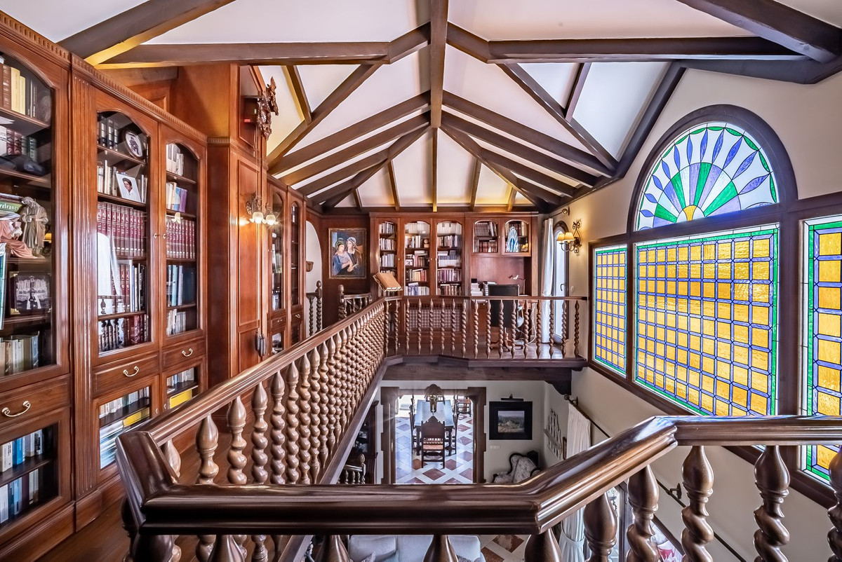 "Fantastic villa in a privileged location 300 m from the best beach in Marbella. Urbanization with 24 hour security. Within walking distance to the supermarket and the beach and in the near future also to the promenade, which leads directly to Marbella. Prime location with many beautiful luxury villas. Very quiet neighborhood and at the same time close to everything you need. a few minutes from the city of marbella, shopping centers and many good restaurants and shops. The villa is kept in Andalusian style and leaves nothing to be desired. The villa offers 6 bedrooms on more than 700 m2 and three floors, as well as a fully equipped guest apartment or for your own service staff, depending on your needs. Combined living room and dining room with access to the terrace. Large kitchen with everything you need. Living room with gallery/library, all very traditional Andalusian. high quality workmanship and the best materials such as Wengé wood, first class marble and a beautiful fireplace. Underfloor heating and individually adjustable air conditioning in each room. All 7 bathrooms have windows. There is also a TV room and a fully equipped leisure area in the basement with sauna, steam bath (Hamam), bar, video screen, several armchairs and sofas and a large Jacuzzi.