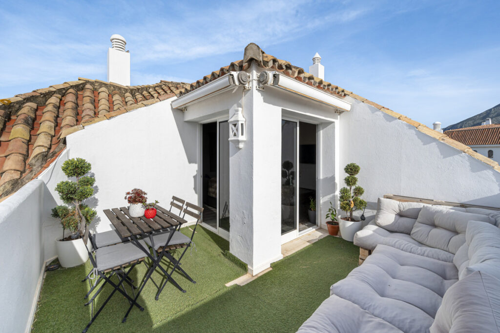 This charming penthouse apartment is located in Las Lomas del Marbella Club, within a prestigious gated community featuring beautifully maintained gardens, three swimming pools — one heated in spring — and 24-hour concierge and security service.