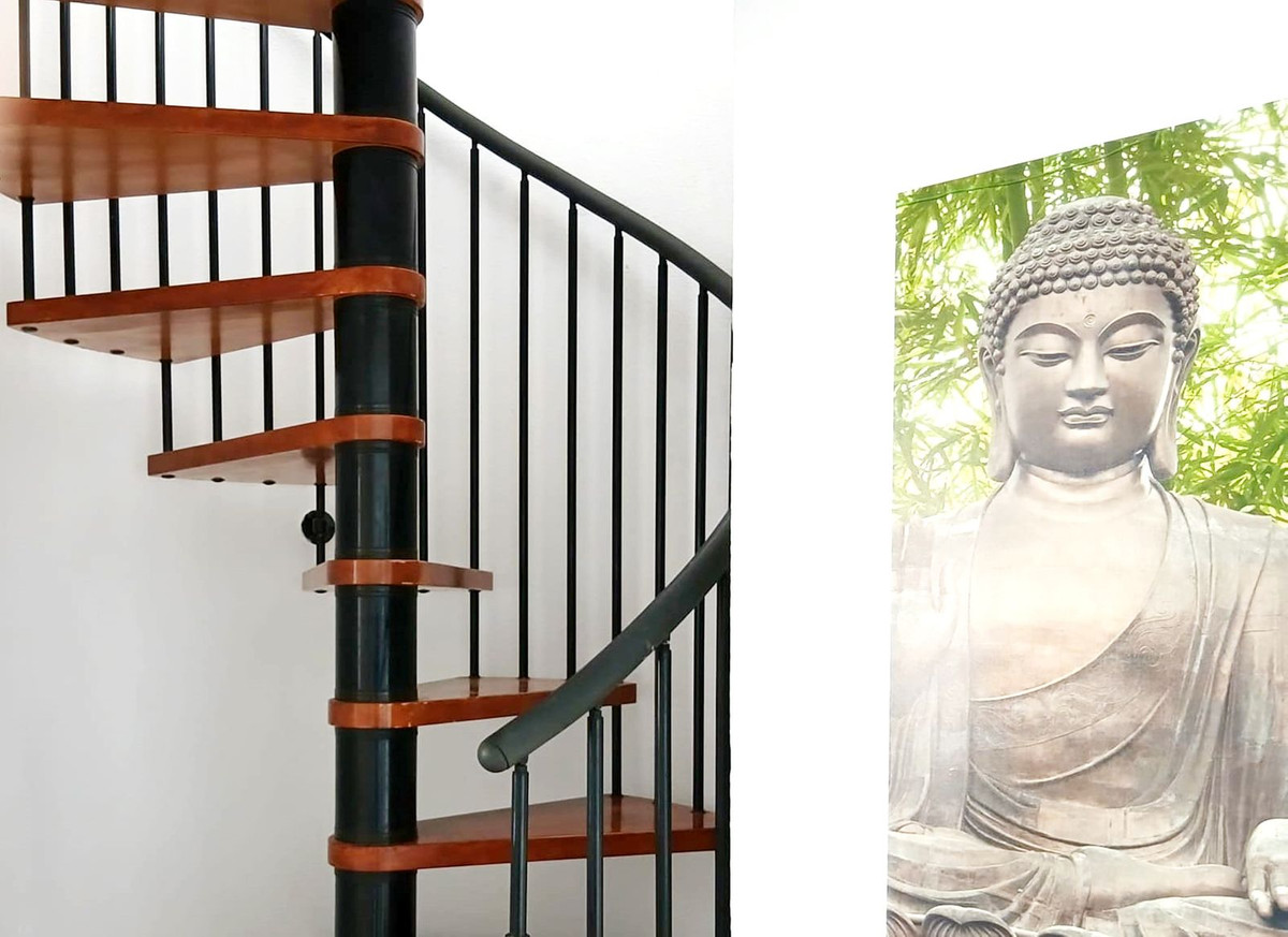 On the main floor, you’ll find an entrance hall, a fully fitted kitchen with utility area, a spacious lounge-dining room, and a bedroom with access to a terrace. An additional bedroom and bathroom complete this level. Upstairs, two more bedrooms, a bathroom, and a wraparound terrace await – ideal for enjoying the sun all day, with a barbecue and dining area for alfresco living. A spiral staircase connects the two levels.