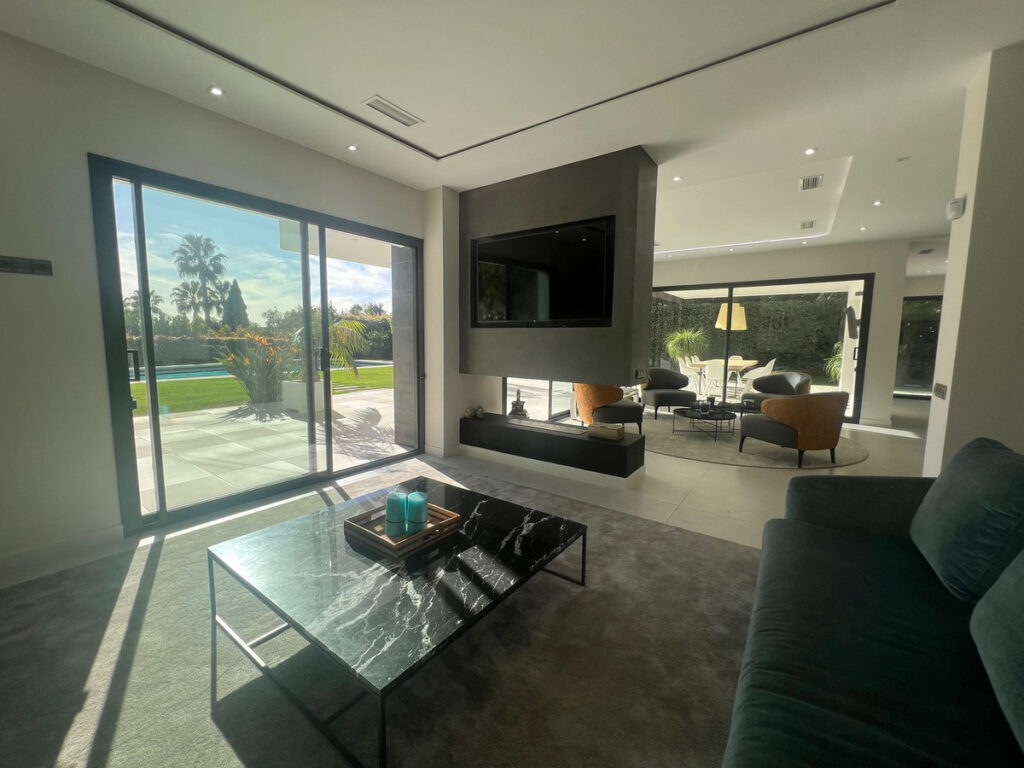 Villa in the golden mile area of Marbella, Malaga, is one of the most modern villa in the area with finished in 2023, the house has six bedrooms with four full bathrooms and a toilet, fully furnished and ready to live, has a garage for 3 cars and game room with guest bedroom, on the first floor has a very spacious living – dining room with access to the pool and garden, has fully fitted kitchen with high quality appliances, the property has an interior lift, on the first floor we have 4 bedrooms with en suite bathrooms and with access to terrace and solarium with a south facing with sea view, the property has home automation throughout the house with air conditioning and heat pump and underfloor heating, the property is located in a cul-de-sac street only and exclusively for housing in the area has 24 hour security, if you want to live in the most exclusive area of MARBELLA ask for an appointment to see it.