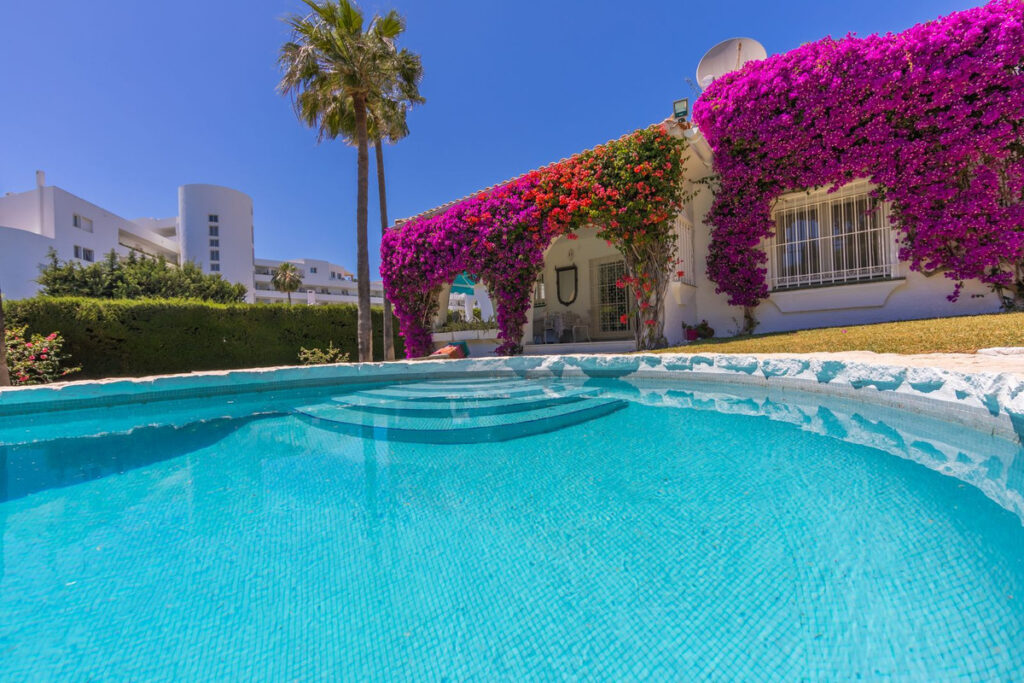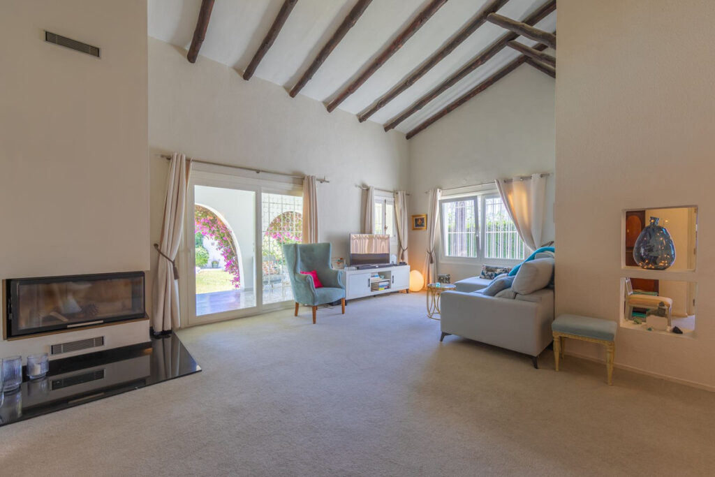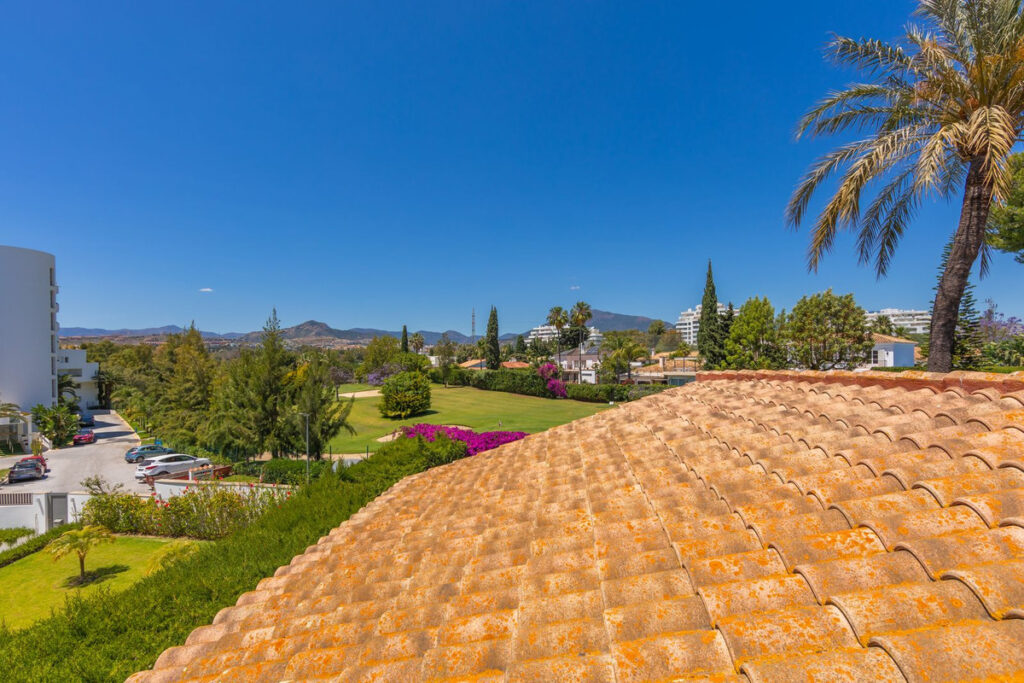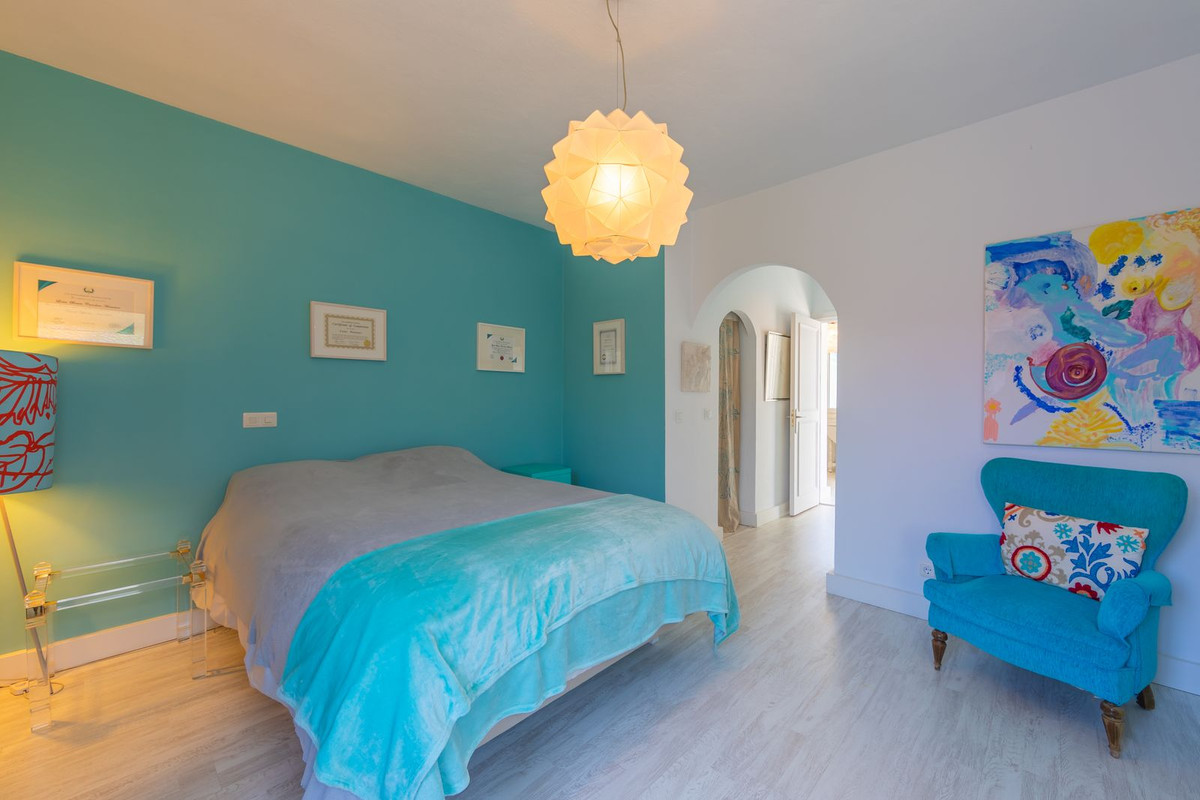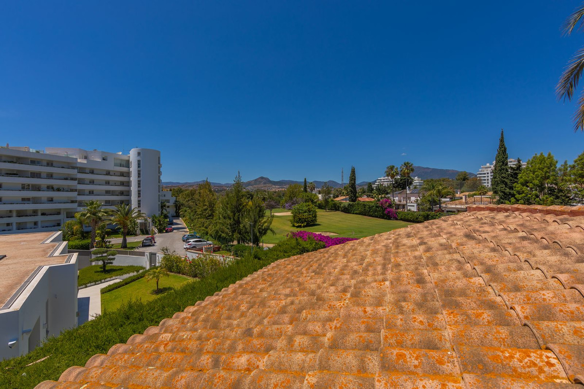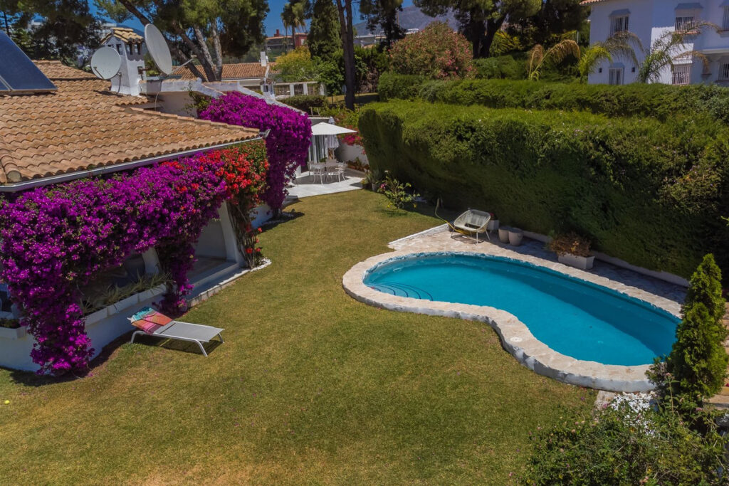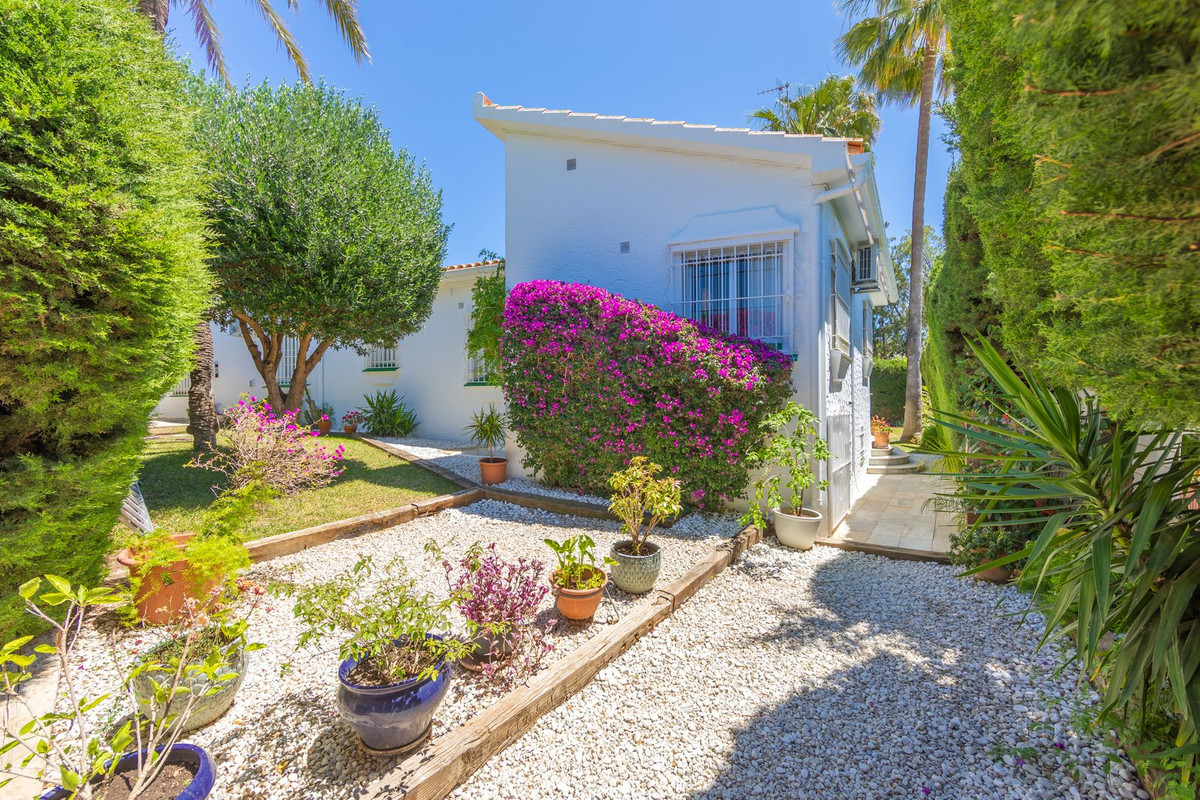VILLA WITH ATTRACTIVE AND BEAUTIFUL MEDITERRANEAN CHARACTER, DISTRIBUTED ON A COMFORTABLE GROUND FLOOR AND LOCATED ON THE FIRST LINE OF GOLF, OF THE PRETIGIOUS REAL CLUB DE GOLF DE GUADALMINA. Located in a corner, in a cul de sac, located by the 18th Tee of the south . Enjoy a beautiful mature garden, very well maintained, with a multitude of trees and plants. LOCATED, 2 km from San Pedro de Alcántara and 6 km from Puerto Banús. Estepona and Marbella 15 min. Restaurants, Shops, and Leisure Areas just a 10-minute walk away and the beach a 5-minute drive away. Completely surrounded by Golf Courses and just a 3-minute walk from the golf clubhouse. (Golf share optional). Enjoy complete tranquility and privacy. South facing with great light and relaxing views of its excellently maintained mature garden and pool. It has a parking area for 2 cars at the entrance of the house plus a closed garage. In good condition and magnificently built, this property is distributed on a very comfortable single level. With a living room with high ceilings with wooden beams and direct access to the porch, garden and the kidney-shaped pool. The master bedroom en-suite with dressing room and direct access to the garden. A large and very bright kitchen with also high beamed ceilings and a dining area located next to the access to the parking area. The other good size bedrooms share 2 full bathrooms. The home has the option of separating an apartment by a door. From the cozy solarium enjoy relaxing views of the garden, golf courses and mountains. It also features a semi-basement with access from outside the house that could be used as a gym, games room, etc. It has great possibilities to change its distribution. We highly recommend visiting this fantastic property.