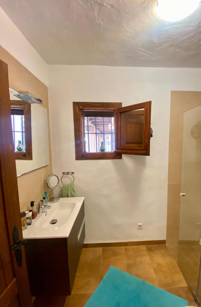 There are another 2 bedrooms in the guest house which also has another bathroom. The finca also has central heating in most of the rooms, when needed. There are also solar panels on the roof of the indoor pool area. The indoor pool can be enjoyed during the warmer months with windows that open from all sides to enjoy the fabulous views and there is also a shower and a jacuzzi enjoy. There is plenty of space to also use this area as a gym.