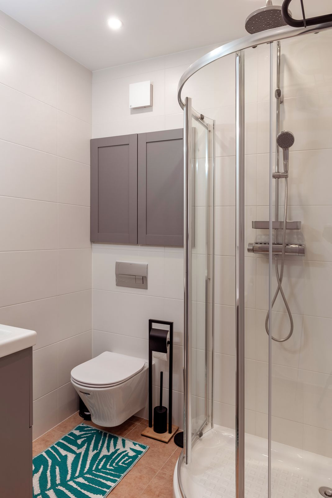 On the first floor there is a master bedroom with ensuite bathroom and large dressing room, two bedrooms with a shared bathroom and a spacious terrace with panoramic sea and mountain views. Each bathroom is equipped with a shower and a bathtub. Two bedrooms have built-in wardrobes with plenty room of storage space.
