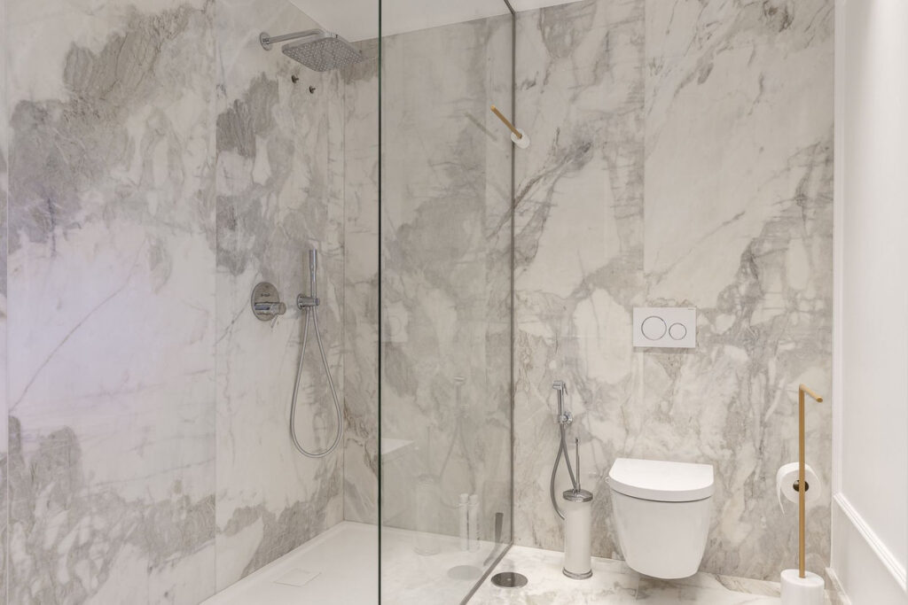 ✅ Elegant Portuguese marble floors & heated marble walls in the bathrooms