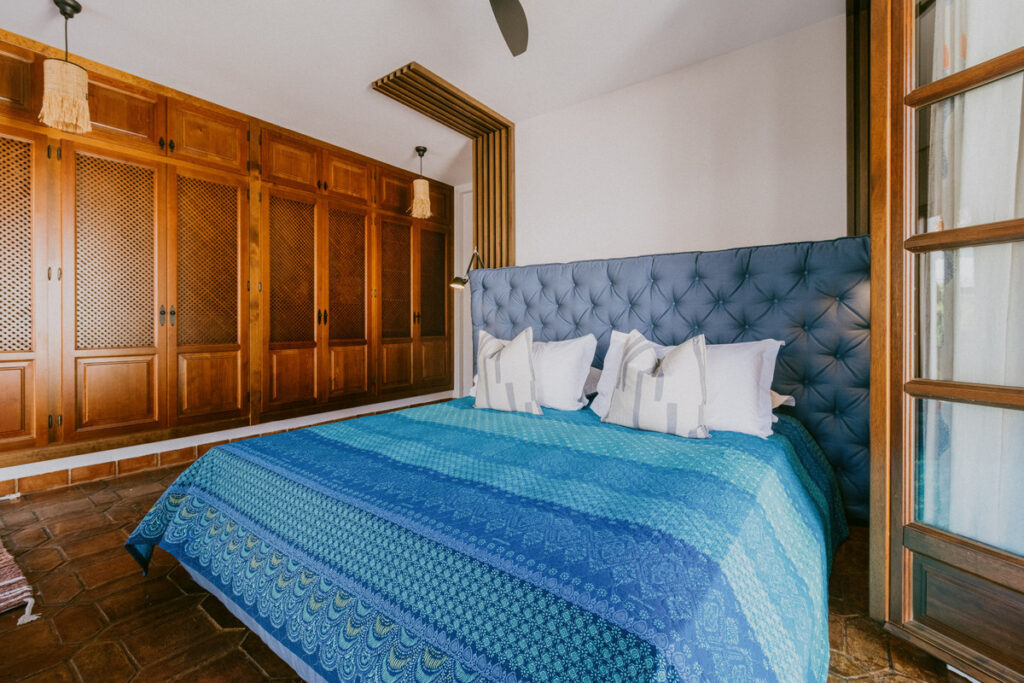 The open-plan living and dining area is bathed in natural light, providing a luxurious yet comfortable space with a real wood fireplace, perfect for relaxing or entertaining. Expansive glass doors lead to a private Andalusian-style patio, offering a serene retreat for outdoor relaxation.
