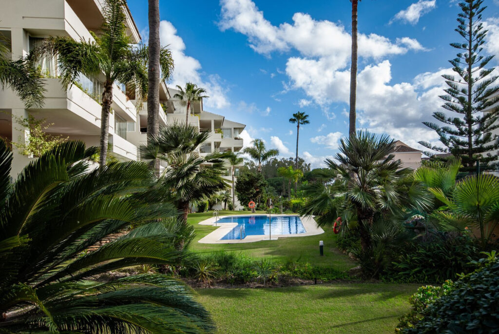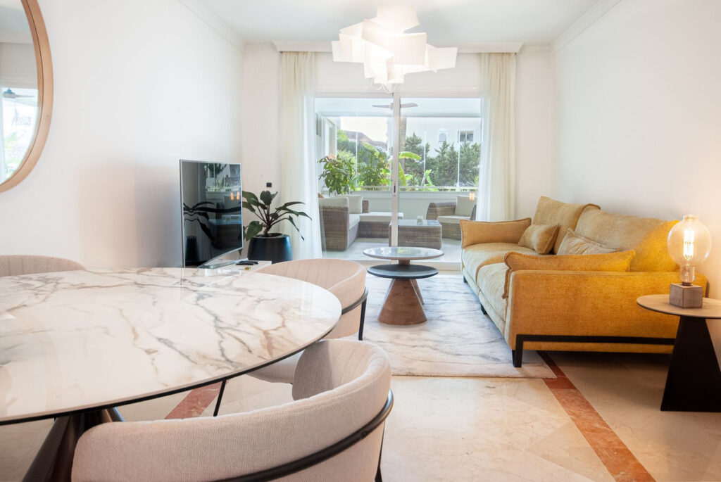 Discover this stunning ground-floor apartment in the highly sought-after Urbanización Rancho Hotel, located in Elviria, Marbella. Just 400 meters from the beach, this property offers the perfect blend of convenience and tranquility.
