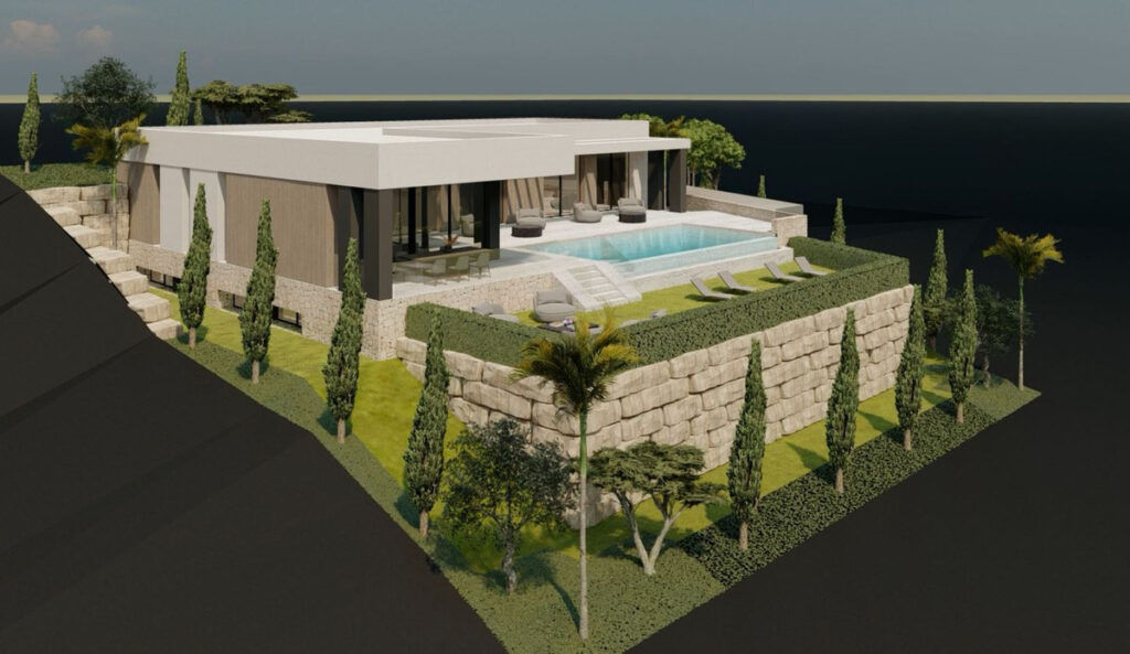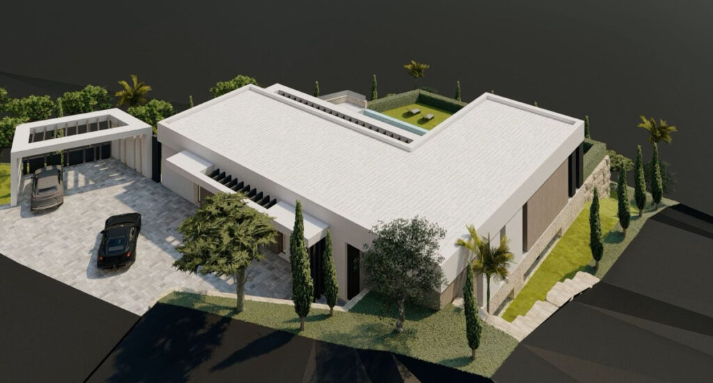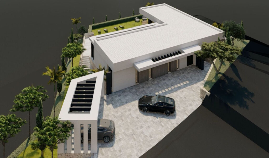 This plot accommodates an exclusive 2-story designer villa spanning 405 m², with 103 m² of south-facing terraces ensuring sunlight throughout the day. The 38 m² swimming pool offers breathtaking views of the Mediterranean sea.