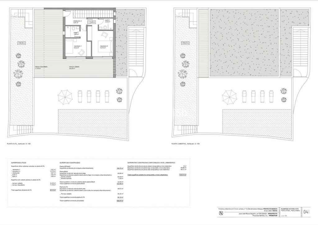 First floor with bedroom 1, bedroom 2, hall, bathroom 3, bathroom 4, covered terrace and open terrace. Total usable area first floor 83.10 m2. Closed constructed area on the first floor 46.91 m2