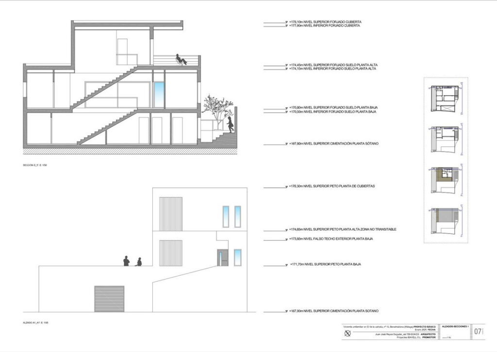 The project which is ready for the building license consists of a detached villa with private swimming pool and garage. It is developed to have basement, ground floor and first floor, with a garage for two vehicles and a swimming pool. It has been oriented so that the main views are directed to the points where there are no buildings, thus increasing the feeling of privacy.
