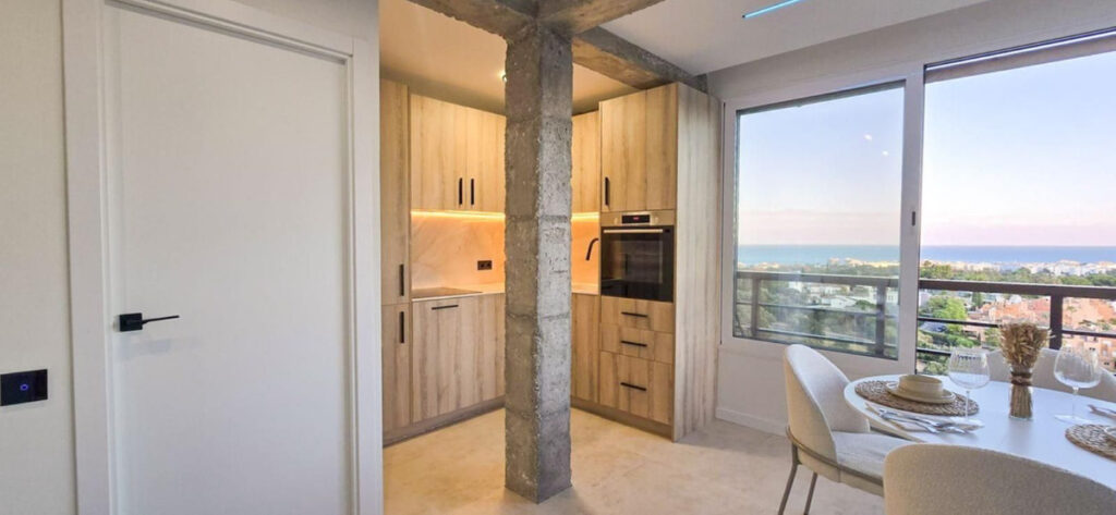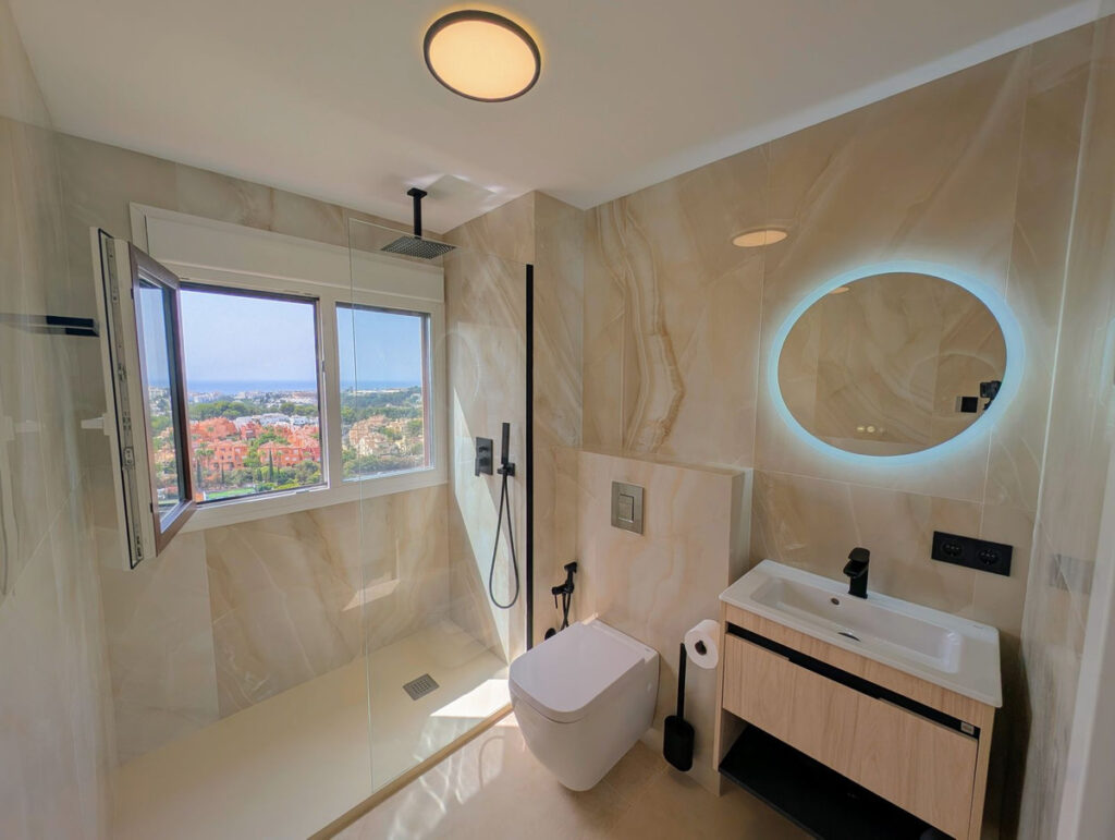 This fully renovated PENTHOUSE 1-bedroom, 1-bathroom apartment offers the perfect blend of modern living and comfort, nestled in the heart of Nueva Andalucía, Aloha. Boasting ,spectacular sea views of both La Concha mountain and Gibraltar, it provides a peaceful yet connected retreat close to all amenities.