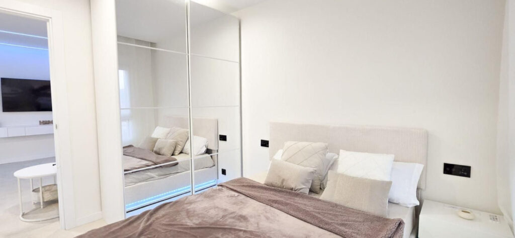 The apartment features an open-plan layout designed to maximize space and natural light, complemented by high-quality finishes and climate control with underfloor heating throughout. Triple-glazed windows ensure excellent insulation and soundproofing (indicated as double glazing in features due to platform limitations).