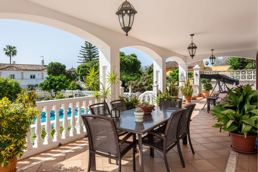 This exceptional Andalusian-style villa is ideally situated in the center of San Pedro de Alcántara, just a 10-minute walk from the beach and promenade. Offering a unique blend of traditional charm and spacious living, the property is perfect for large families or those seeking a home with guest accommodations.