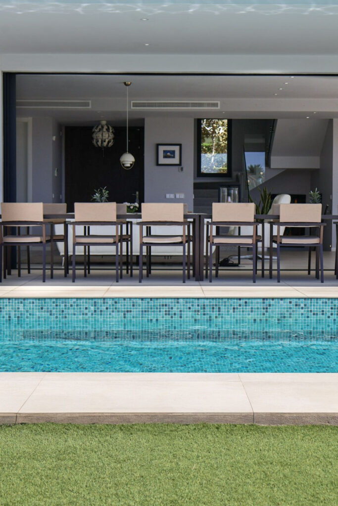 – Large sunny terraces and a private saltwater pool, heated for year-round relaxation.