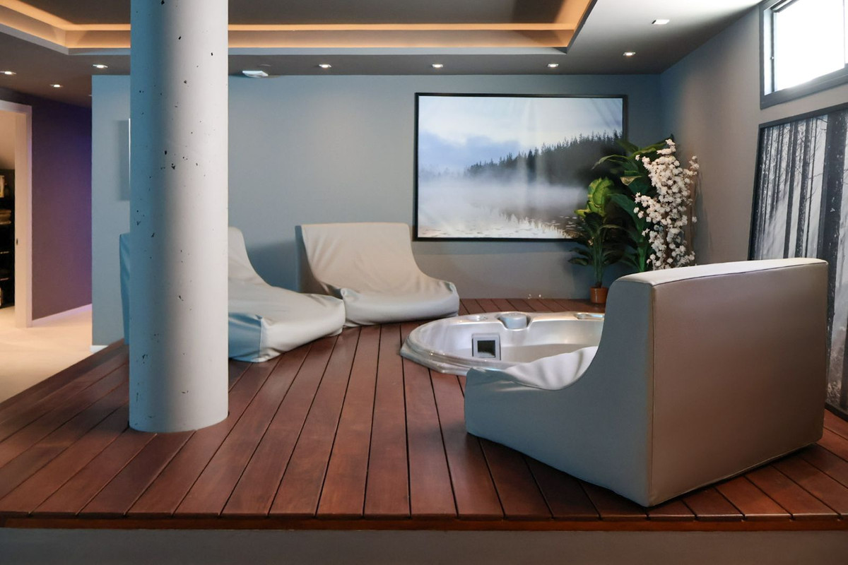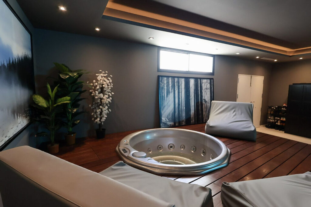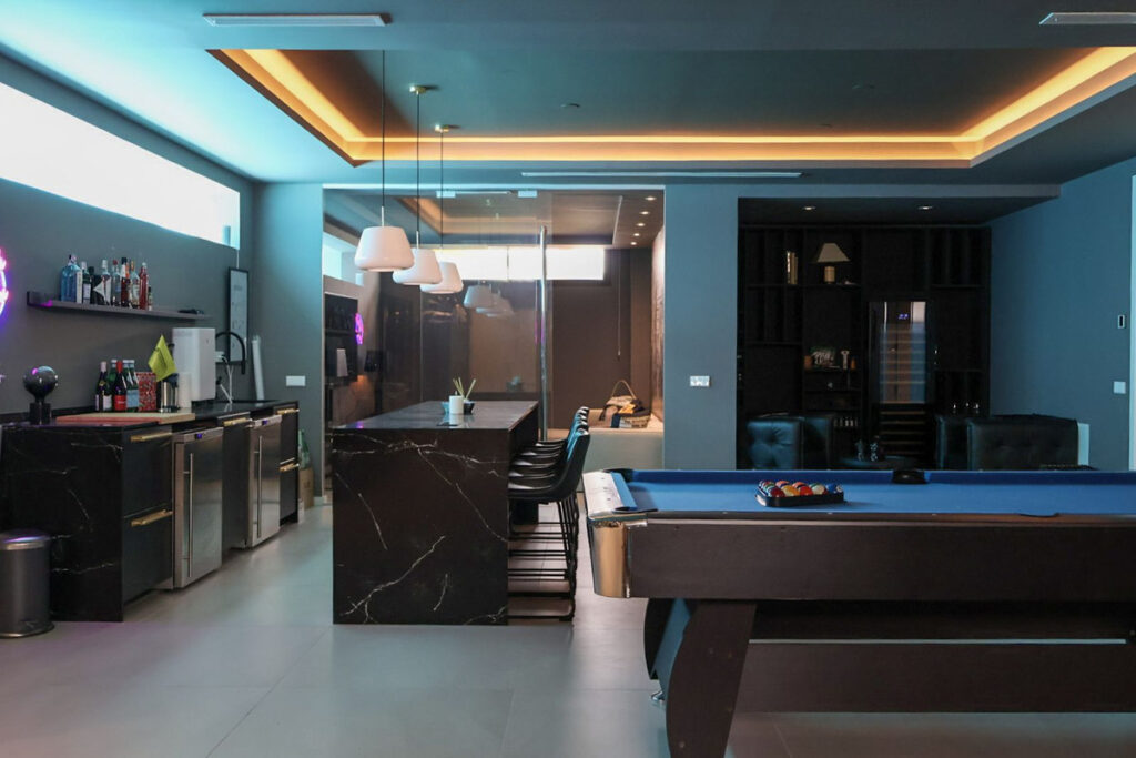 – Basement with a cinema room, full spa area (Jacuzzi, sauna, Turkish bath), and a bar and lounge area perfect for entertaining.