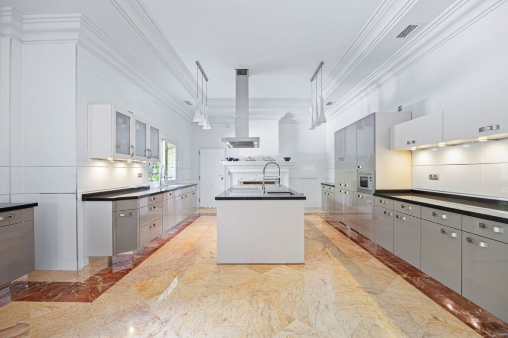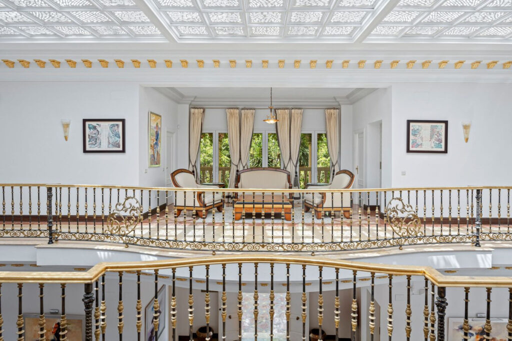The estate sits on over 4,000 square meters of private grounds, and offers more than 1.500 square meters of interior space laid out across three levels. The main floor is designed for entertaining, with generous reception rooms, elegant ceilings, and natural light pouring in through large windows that open to the terraces and garden beyond.
