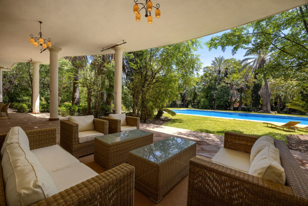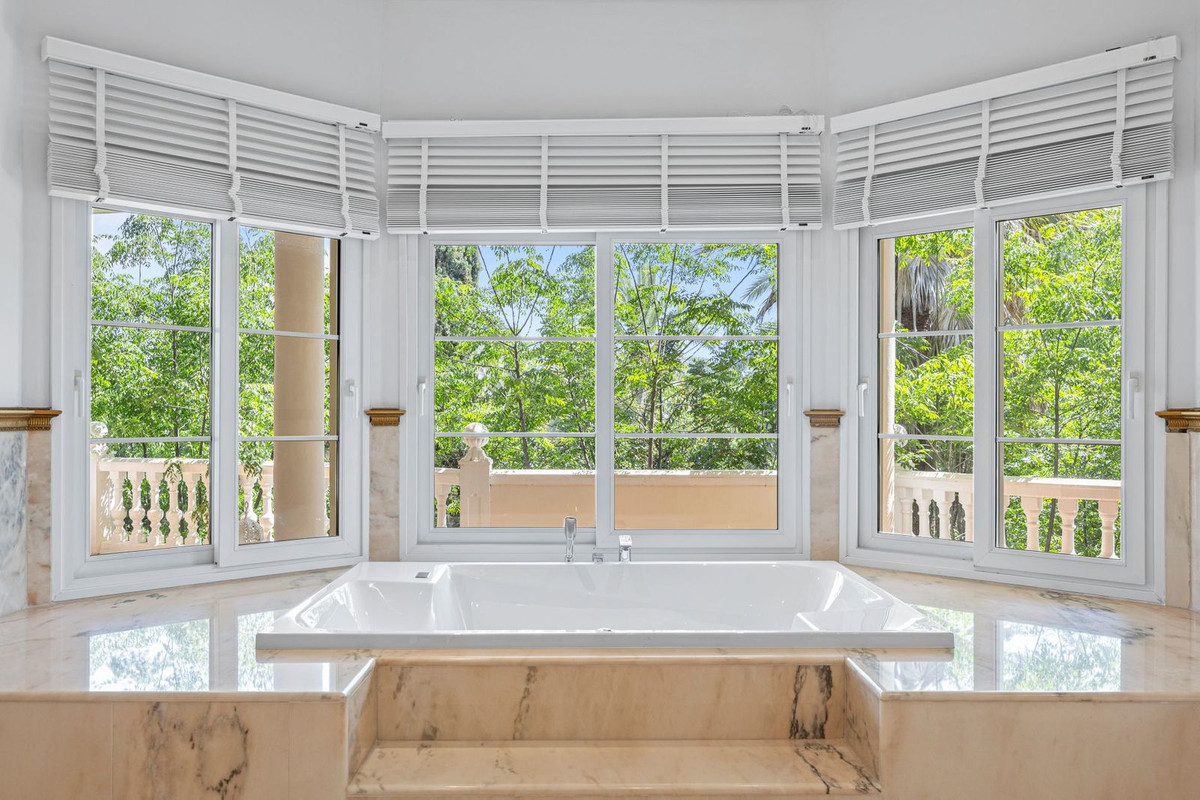 Tucked away in one of Marbella’s most discreet and sought-after residential areas, this timeless estate blends classical European elegance with the calm of lush, mature gardens. Just a few minutes from the heart of town and landmarks like Puente Romano Resort and the Marbella Club Hotel, it offers a rare mix of seclusion and convenience.