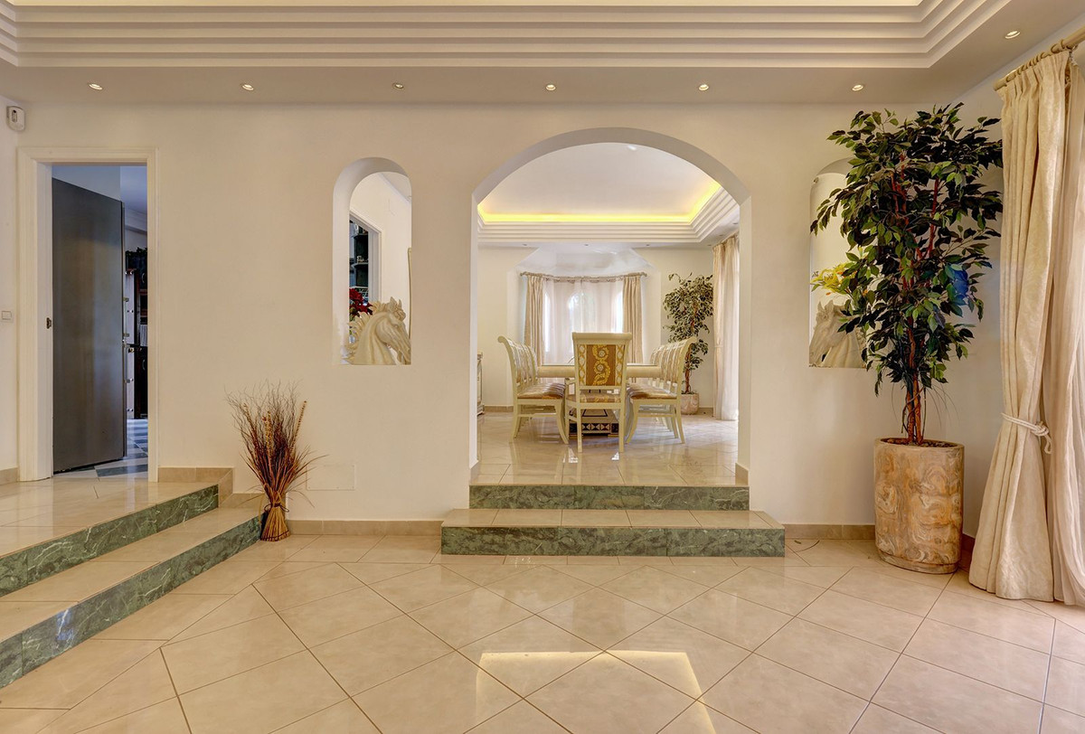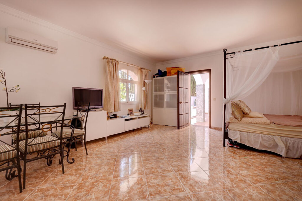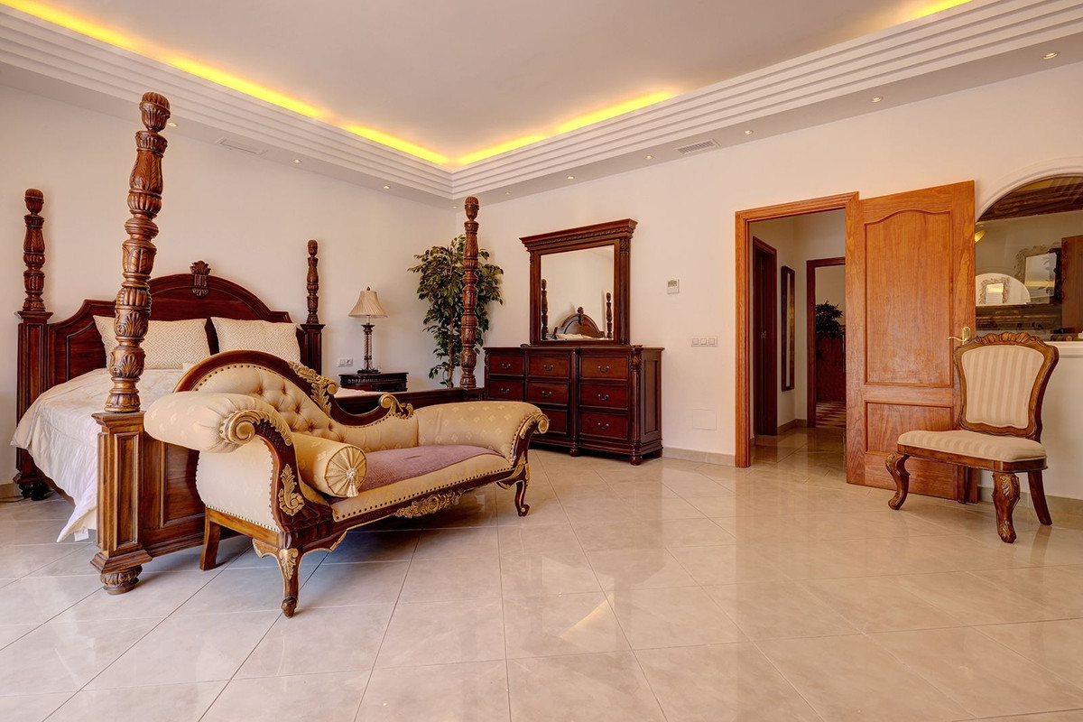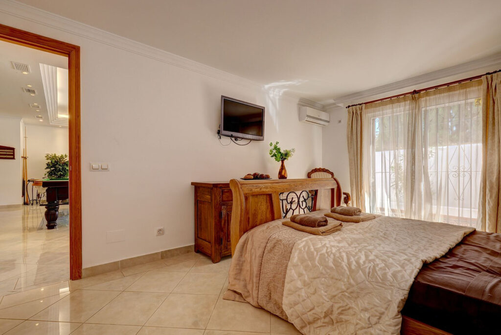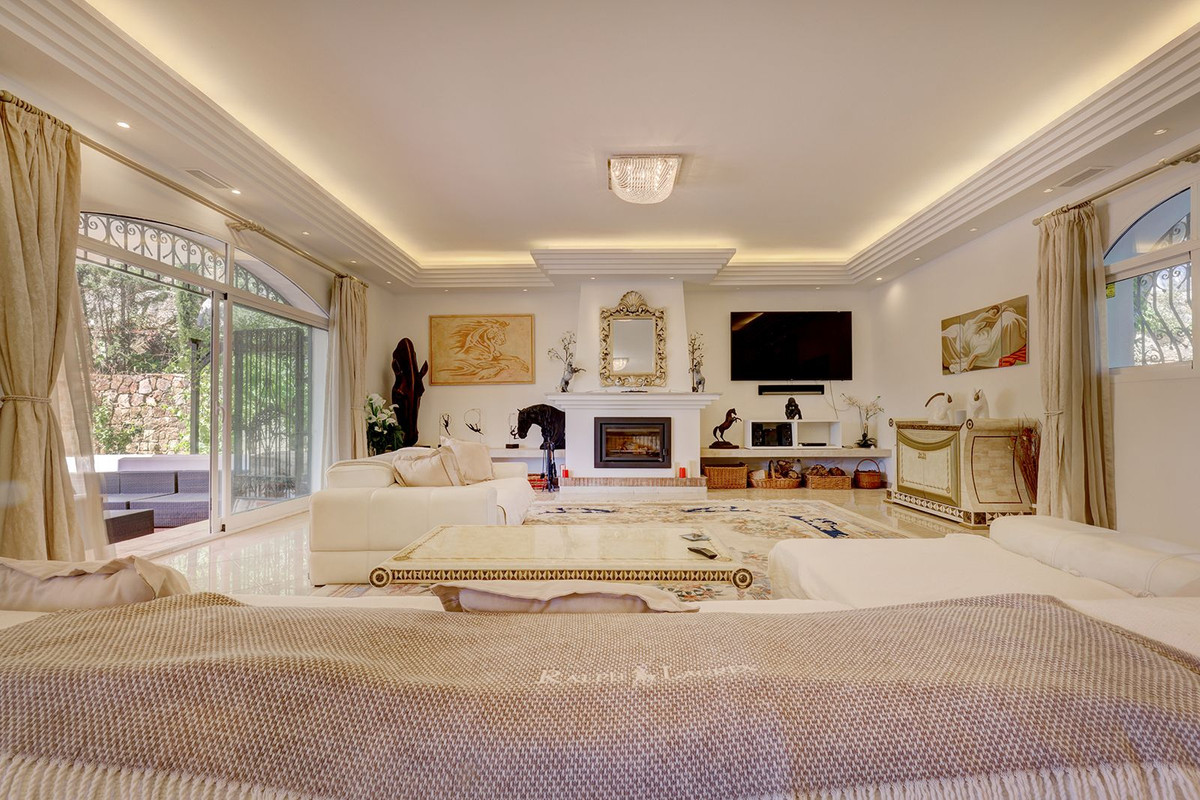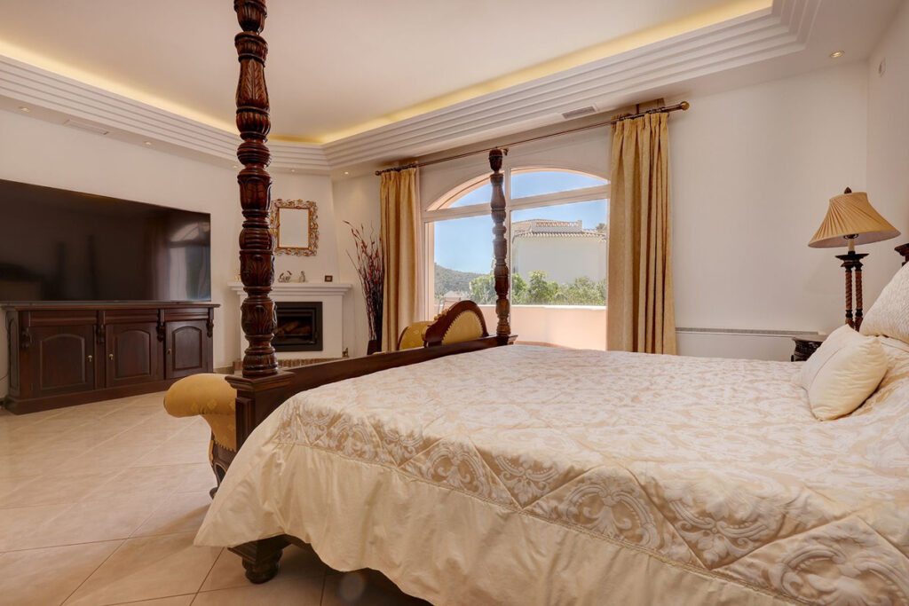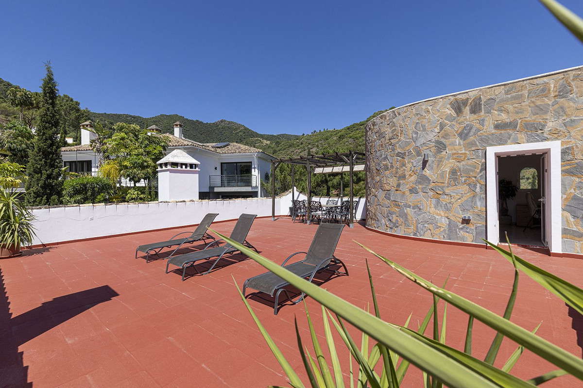 For location this property is perfect for peace and tranquillity but close to everything you need. Entering through the gates you are immediately impressed with the grand design of this villa. To the left you have a independent guest house with 2 one bedroom apartments, garage and gymnasium. Entering the main villa you are greeted with a wonderful sweeping staircase, high ceilings and views to the pool area. The huge living area comes with a log burner, dining area for 10 guests and a large kitchen with mountain views. Going down one level you have a large games room with bar and access to a large terrace. One bedroom with bathroom and the other side is the laundry area with plenty of storage too. On the first floor 3 large double bedrooms, all with en-suite and all leading onto the sunny terrace with fantastic mountain views. Master bedroom comes with an open fireplace, walk in wardrobe and huge bathroom. Top floor has a small office with access to the huge solarium roof terrace with over 80 m2 of space. The pool area is perfect for entertaining and the huge covered terrace boasts 4mtr high ceilings. There is separate access to the guest house at the side of the property allowing the main house total privacy. The property comes with a tourist licence making it a fantastic opportunity for rentals due to it's incredible location. A must see property!!
