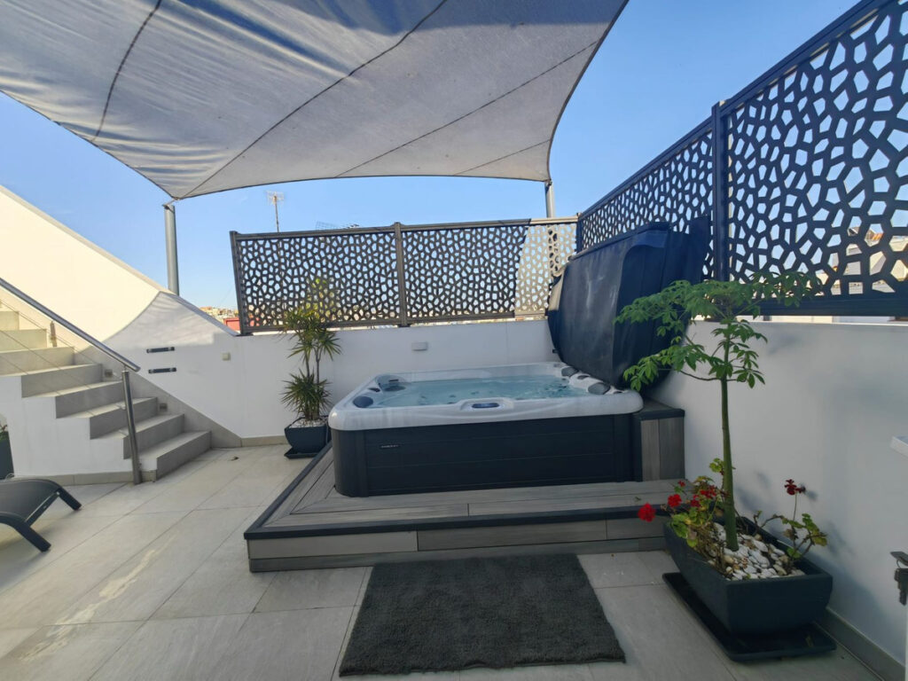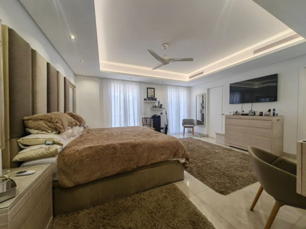 A second main bedroom suite, also with walk-in wardrobe and ensuite, shares this floor with a bright, open area for additional storage and a sun terrace complete with jacuzzi, outdoor hot/cold shower, and chill-out zone. Glass doors, open sky, and natural breezes make this a true sanctuary.