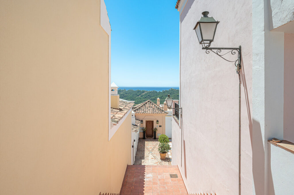 Set in the peaceful hills of Monte Mayor, this elegant four-bedroom townhouse offers a secure and scenic lifestyle just a short drive from the coast. Located in Benahavis, the property enjoys easy access to the A-7 coast road, putting Estepona and Guadalmina within 20 minutes by car. The area is popular with families and second-home owners who appreciate privacy, natural surroundings, and good connections to international schools, golf courses, and nearby beaches. You are also close to sports clubs, supermarkets, hospitals, and other essential services. The property is part of a gated community with 24-hour security, cameras, and communal facilities, including a garden, pool, and garage.