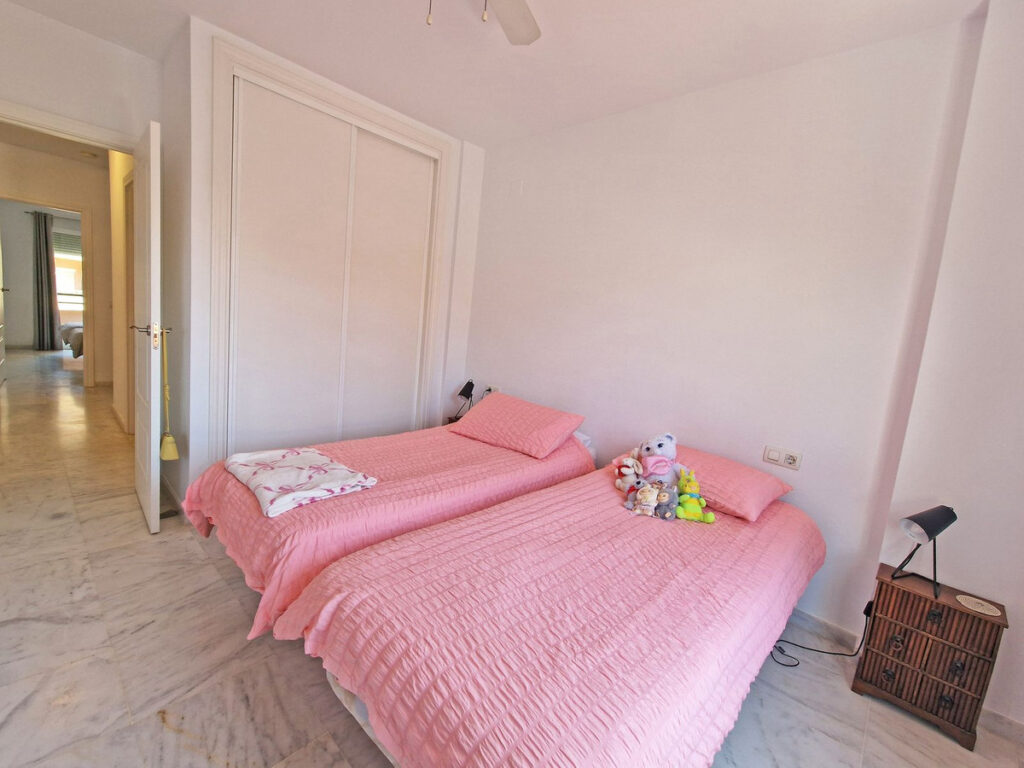 This bright and impeccably maintained apartment offers a smart and functional layout. On the upper floor, you'll find a luxurious master suite complete with a private terrace, creating a peaceful retreat with open views. On the main level, two additional double bedrooms share a well-appointed bathroom, ideal for guests or family.
