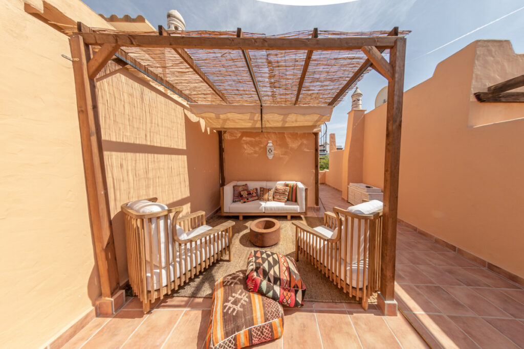 Second floor: a lovely terrace with awning, plus a spiral staircase leading to an additional rooftop terrace – perfect for sunbathing or enjoying open views.