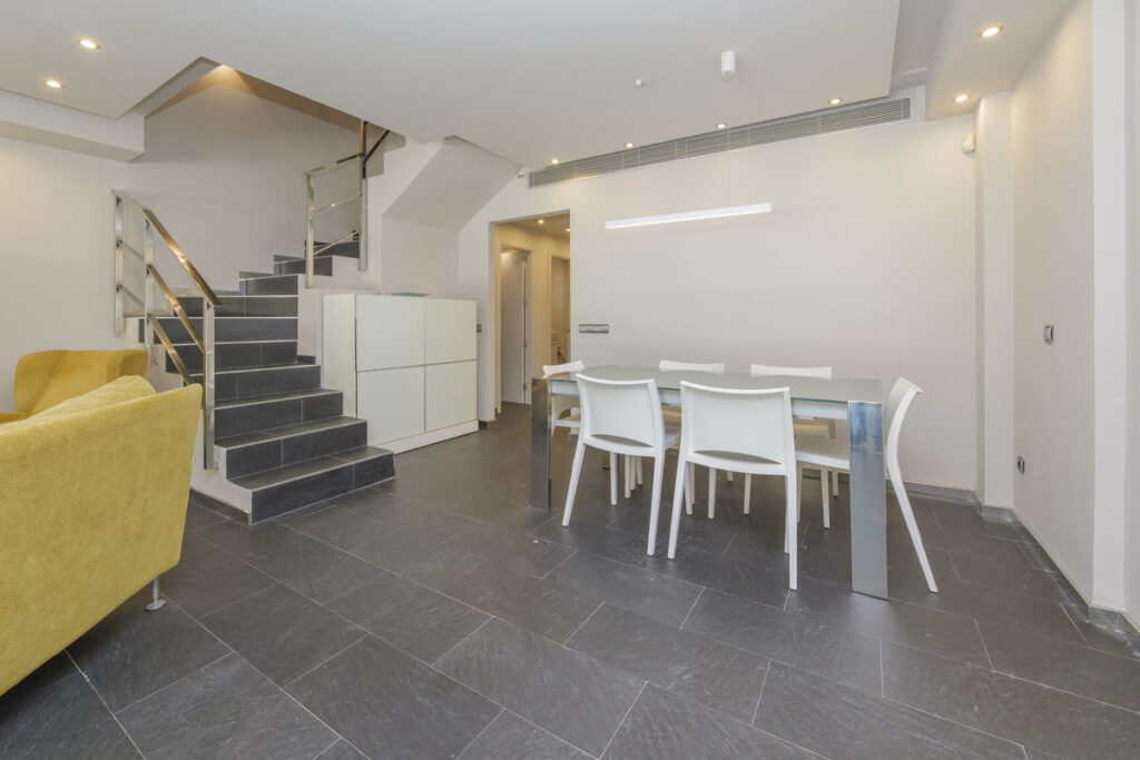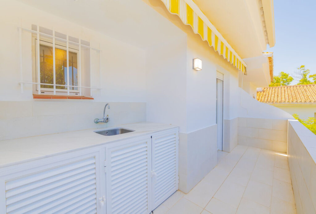 Impressive renovated Town House beachside Artola-Cabopino. This property is nestled in a cosy 16 dwelling urbanization with a gifted location, just 70m from the protected "Dunas de Artola" in Cabopino (sandy dunes protected by law), 200m from the shore and yet with the A7 Road at a mere 2 minutes, hence wonderfully communicated. The house welcomes you through a gated porch, at the entrance we find the lobby that leads to the fully furnished and fitted kitchen with island on the left, guest toilette on the right and storage room; living room with dining area and the stupendous terrace facing the garden and pool. On the first floor, three bedrooms and two bathrooms, one of them en suite plus a small terrace. Eventually, the icing on the cake, a 60m2 superb top floor bedroom with dressing room plus a complete bathroom with bath tube and shower. This property, with underground private parking, has been renovated with attention to detail and features such as underfloor heating in the bathrooms, electric blinds, water softener, numerous A/C hot &cold splits, double glazing throughout, etc. Come and check this example of a Holiday Home that can also be aimed as a First Home as it has amenities and services at hand: pharmacy, shops, restaurants as well as the Port of Cabopino in the vicinity with its plethora of bars and restaurants.