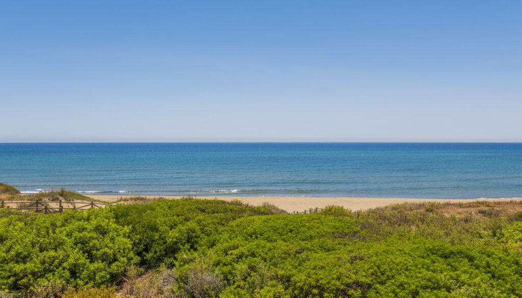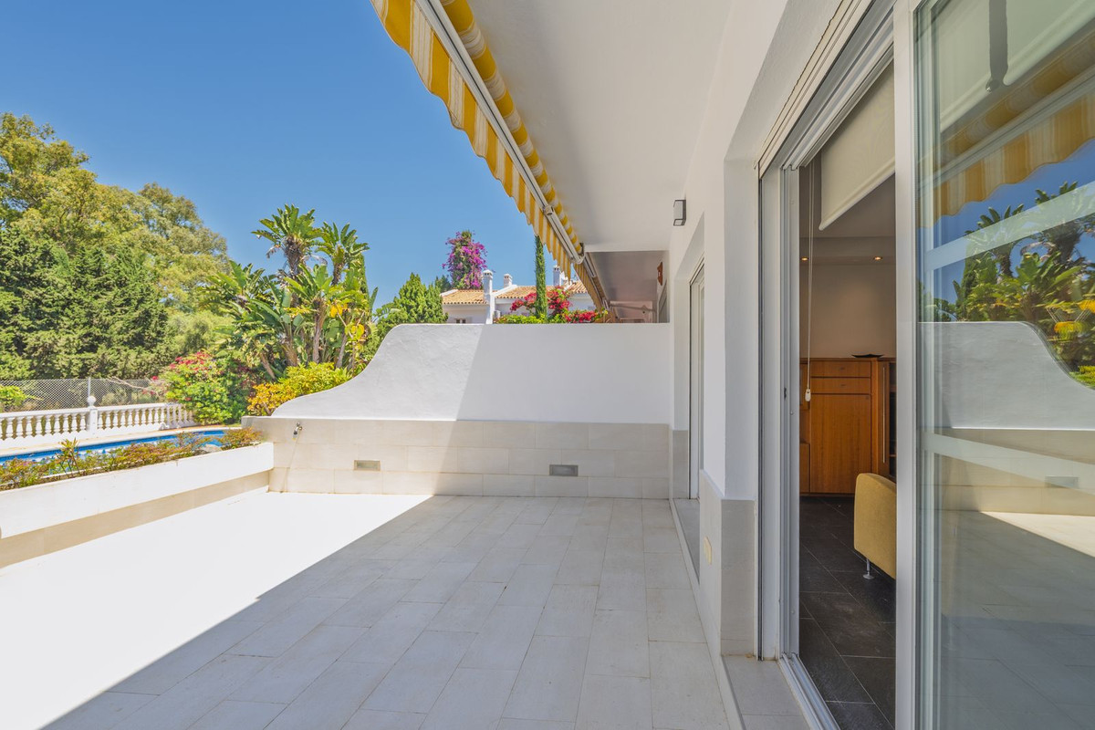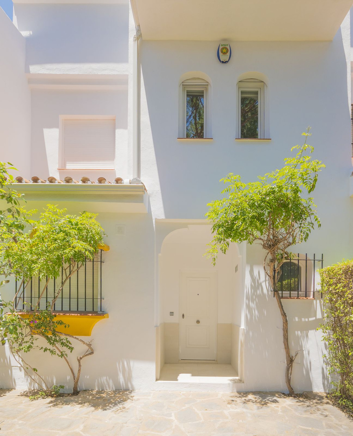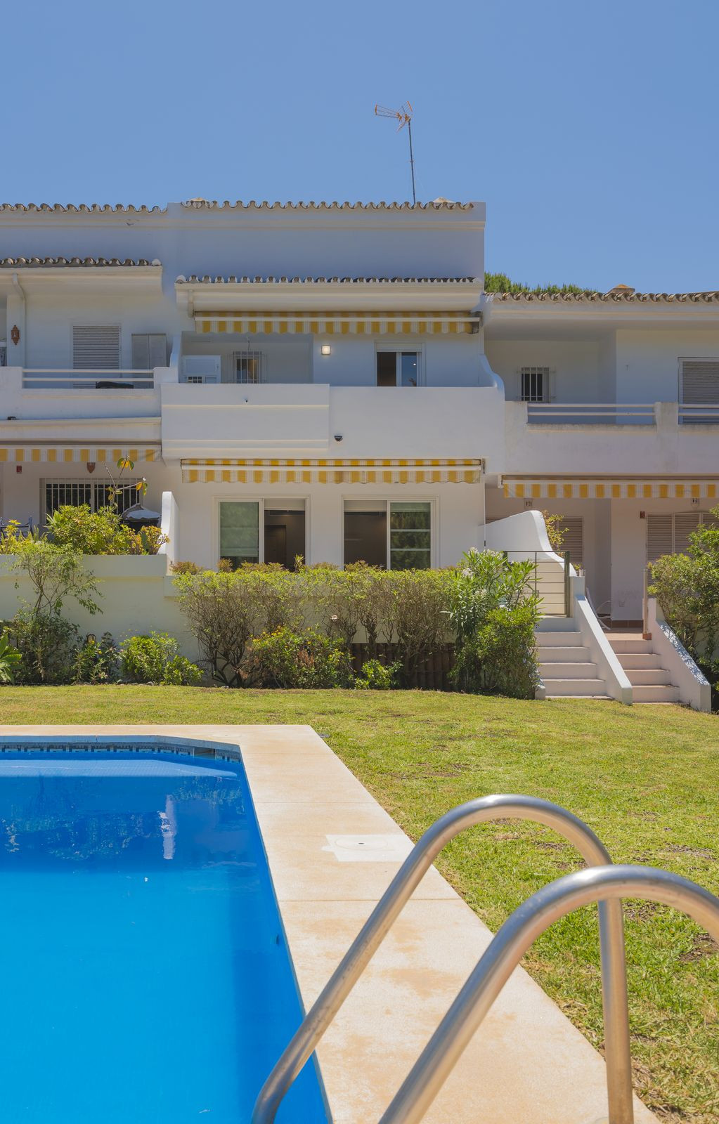 Impressive renovated Town House beachside Artola-Cabopino. This property is nestled in a cosy 16 dwelling urbanization with a gifted location, just 70m from the protected "Dunas de Artola" in Cabopino (sandy dunes protected by law), 200m from the shore and yet with the A7 Road at a mere 2 minutes, hence wonderfully communicated. The house welcomes you through a gated porch, at the entrance we find the lobby that leads to the fully furnished and fitted kitchen with island on the left, guest toilette on the right and storage room; living room with dining area and the stupendous terrace facing the garden and pool. On the first floor, three bedrooms and two bathrooms, one of them en suite plus a small terrace. Eventually, the icing on the cake, a 60m2 superb top floor bedroom with dressing room plus a complete bathroom with bath tube and shower. This property, with underground private parking, has been renovated with attention to detail and features such as underfloor heating in the bathrooms, electric blinds, water softener, numerous A/C hot &cold splits, double glazing throughout, etc. Come and check this example of a Holiday Home that can also be aimed as a First Home as it has amenities and services at hand: pharmacy, shops, restaurants as well as the Port of Cabopino in the vicinity with its plethora of bars and restaurants.