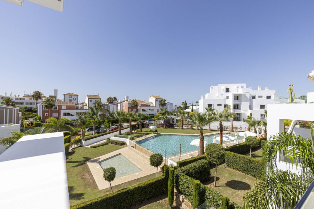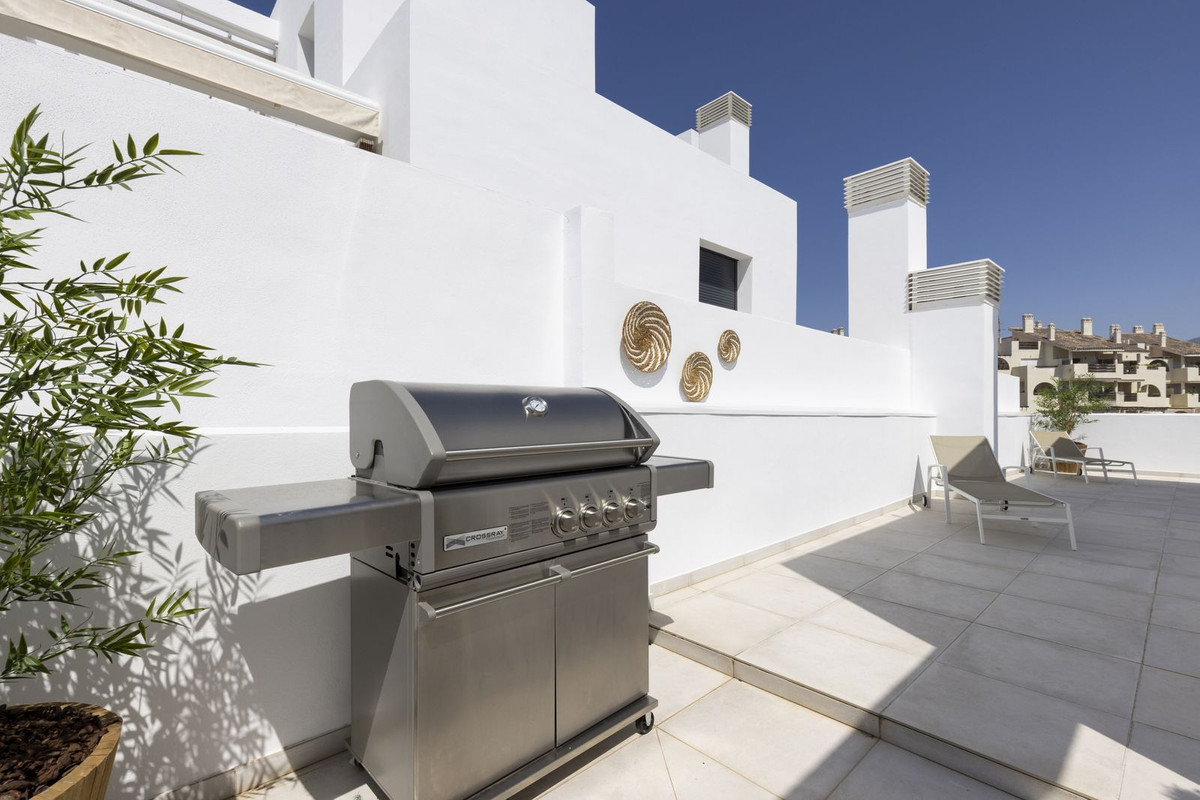 This spectacular 2-bedroom, 2-bathroom penthouse is located in the exclusive development Cortijo del Golf, in the El Paraíso area of Estepona. Situated in the heart of the New Golden Mile, this enclave combines tranquility, security, and proximity to key points of interest on the Costa del Sol, such as Puerto Banús and Marbella, just a few minutes away by car.
