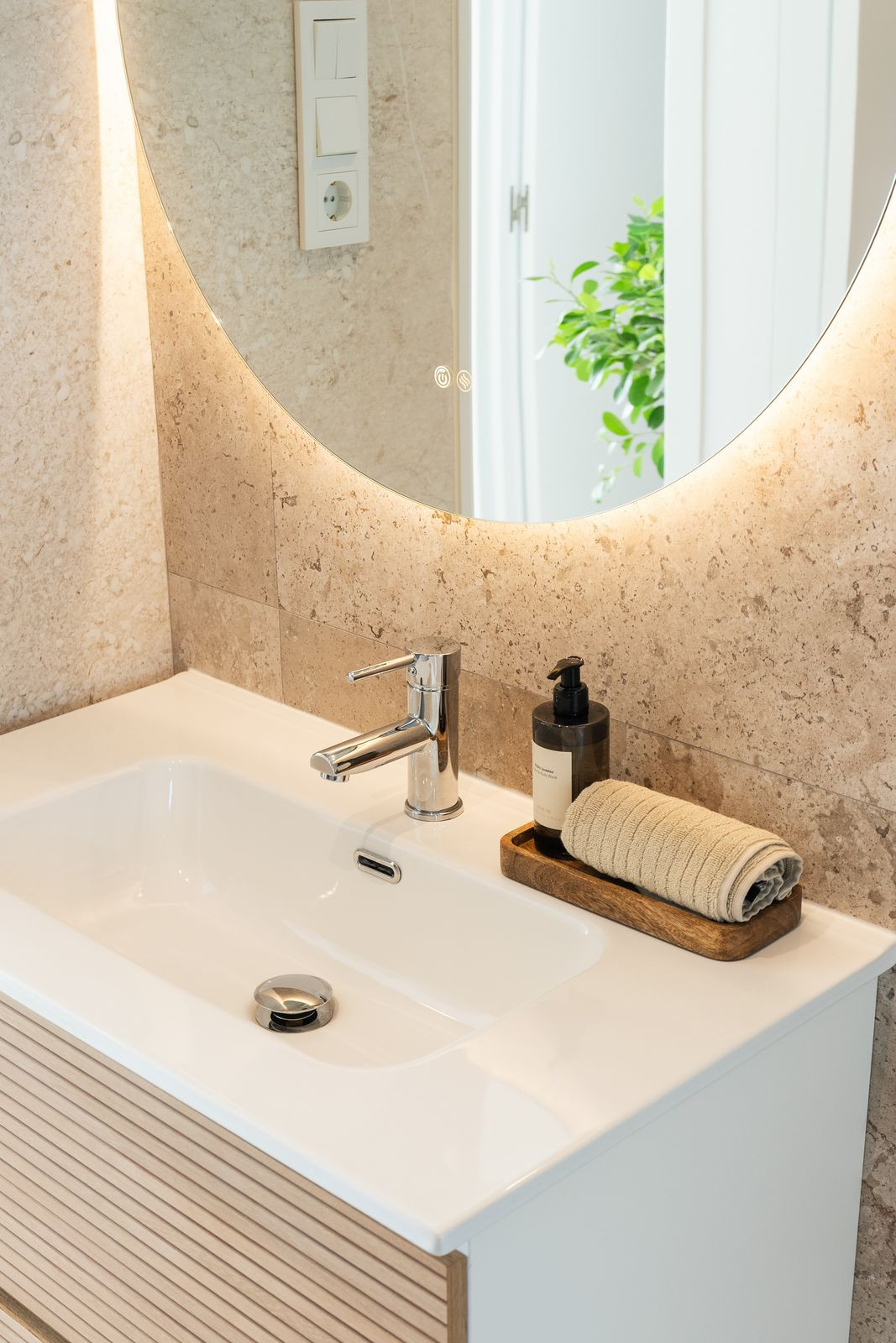 The apartment underwent a complete renovation in 2025, with everything brand new, including electrical systems, plumbing, kitchen, bathrooms, flooring, and windows. The interior has been designed to a high standard throughout, featuring a sleek kitchen with Bosch appliances, 80×80 stone flooring, built-in wardrobes, and air conditioning for both cooling and heating in every room, ensuring year-round comfort.