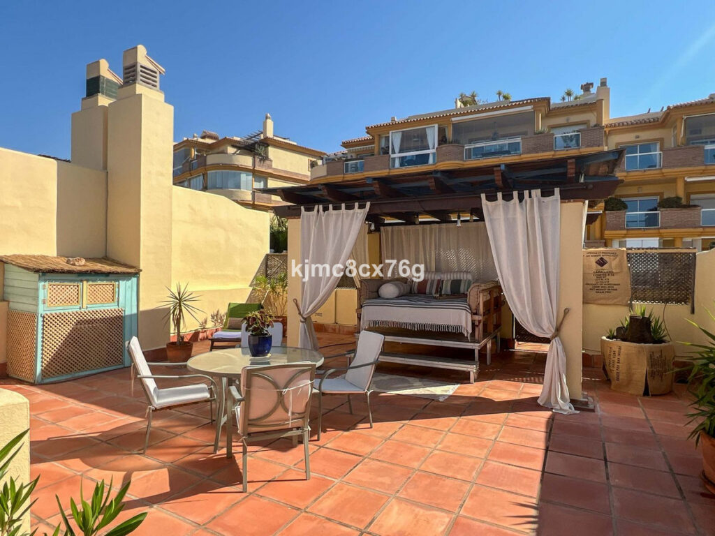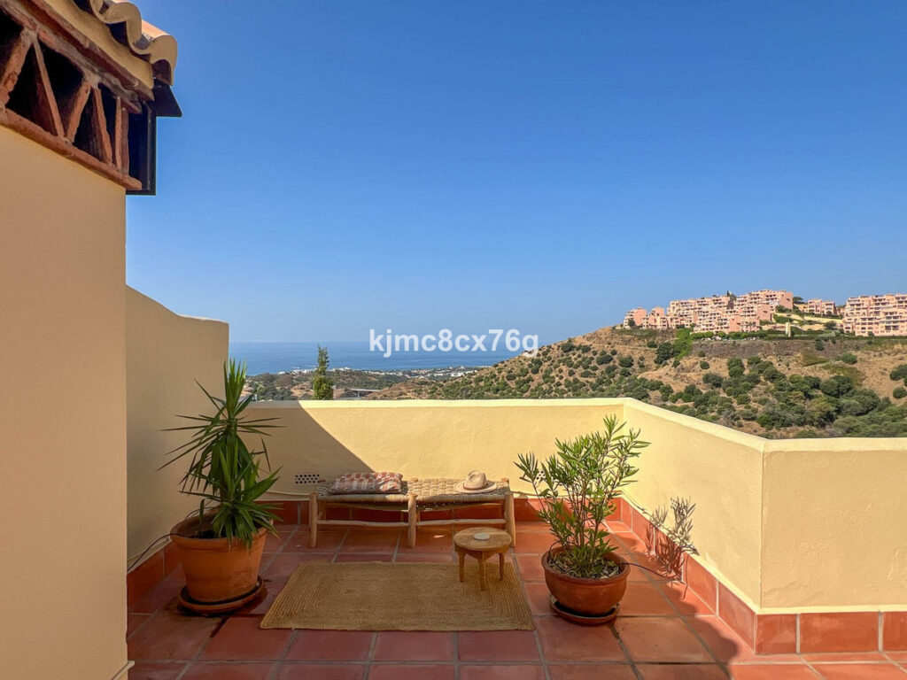 Discover this stunning 2-bedroom penthouse, fully renovated and located in a peaceful Andalusian-Mediterranean style complex in upper Calahonda (Mijas Costa). Facing west, it enjoys all-day natural sunlight and spectacular panoramic views of the sea and mountains from every room.