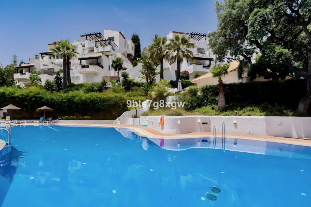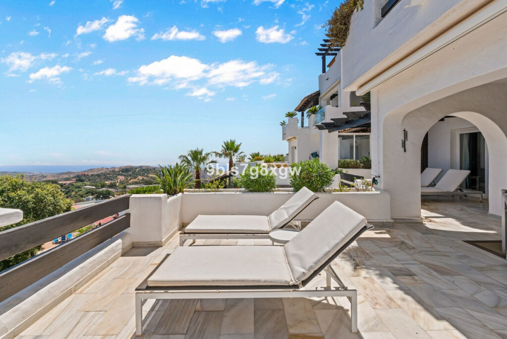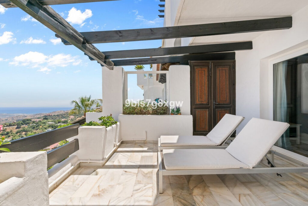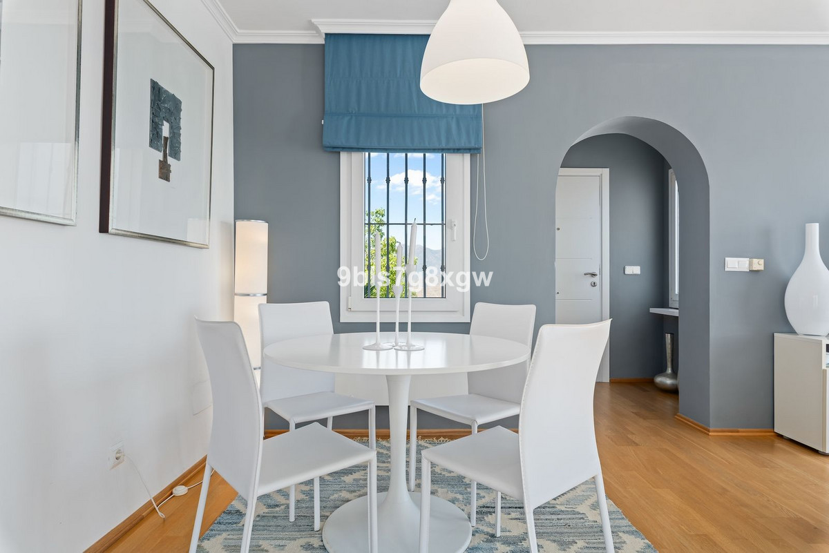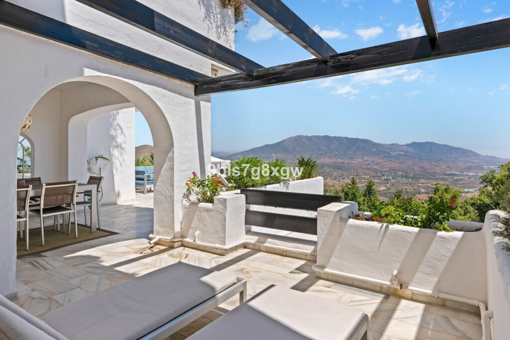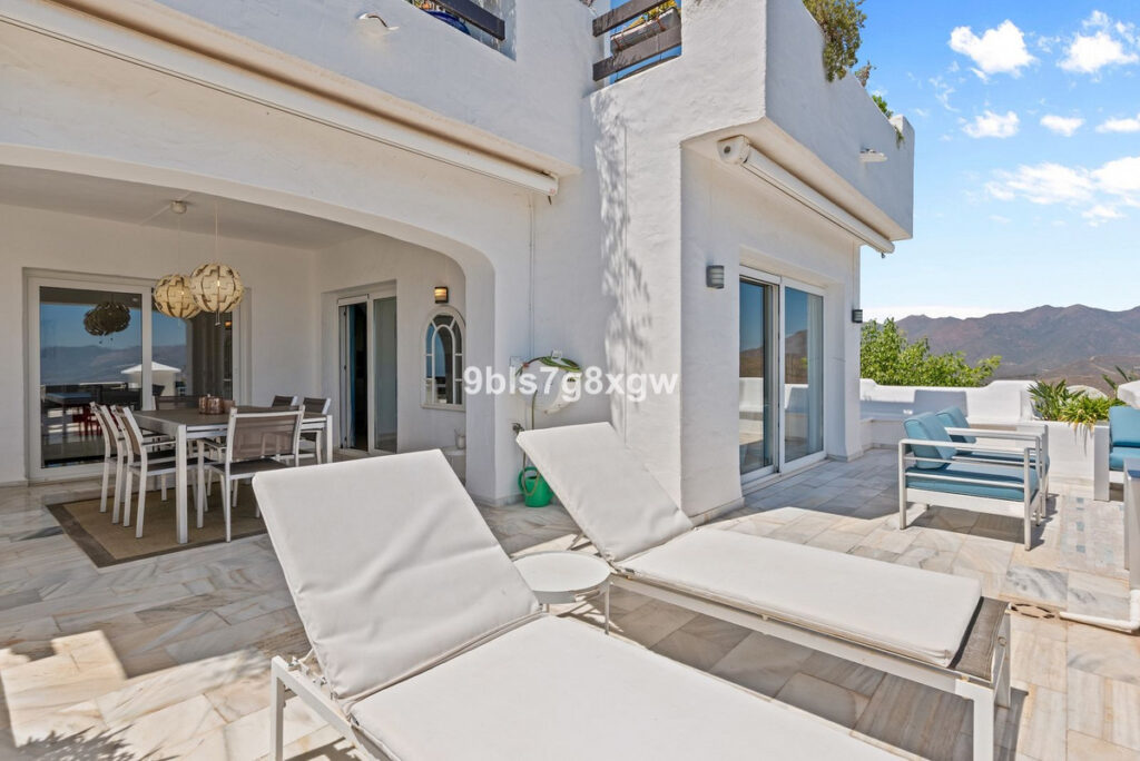 Nestled in a charming Andalusian-style gated and secured community in the picturesque area of La Mairena, this unique 2-bedroom, 2-bathroom corner apartment blends traditional character with modern comfort and offers truly breathtaking views of the Mediterranean Sea, rolling countryside, and majestic mountains. The residence boasts beautifully landscaped surroundings and a large communal swimming pool, perfect for relaxation.