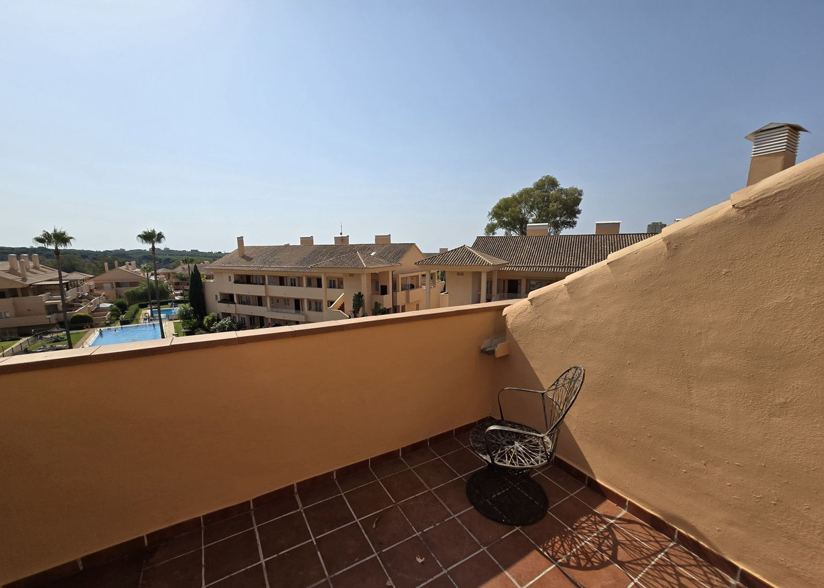 This bright two-storey penthouse is in good condition and comprises a large living and dining room with access to a spacious terrace. The kitchen is located at the rear, as is the second bedroom. A complete family bathroom is also on this level.
