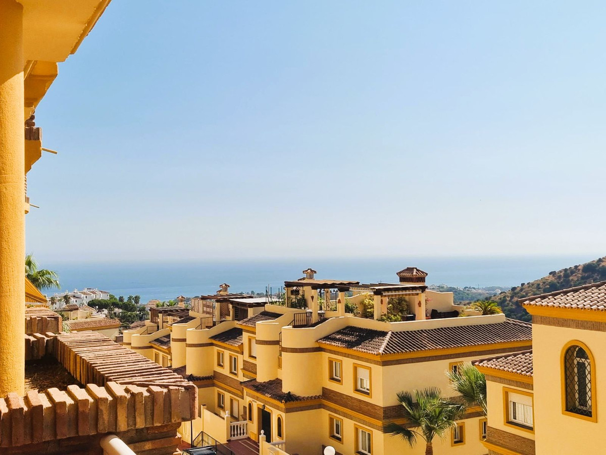 Fantastic raised ground-floor apartment situated in a sought-after and very well-maintained complex in the upper part of Calahonda. The property has stunning panoramic views of the coast and the Mediterranean Sea. This lovely property offers a modern fitted kitchen with all new appliances and a serving hatch opening onto a spacious and bright living/dining room with open fireplace. From the lounge there is access to a large West-facing terrace of from where you can enjoy fantastic views of the sea and surroundings. The property has 2 double bedrooms with fitted wardrobes and 2 bathrooms (one en-suite). The main bedroom also has direct access to the terrace. The property ready to move in to. It has marble flooring, double glazing, hot & cold air-conditioning and a working fireplace. Within the complex are 2 large communal swimming pools with great views and mature well-maintained gardens. There is off-road communal parking directly in front of the apartment block and also gated communal parking in the centre of the complex. For golf lovers, the property is located just 1.5 km from La Siesta Golf and there are 2 bars and 2 restaurants within a short walking distance (500 metres away)