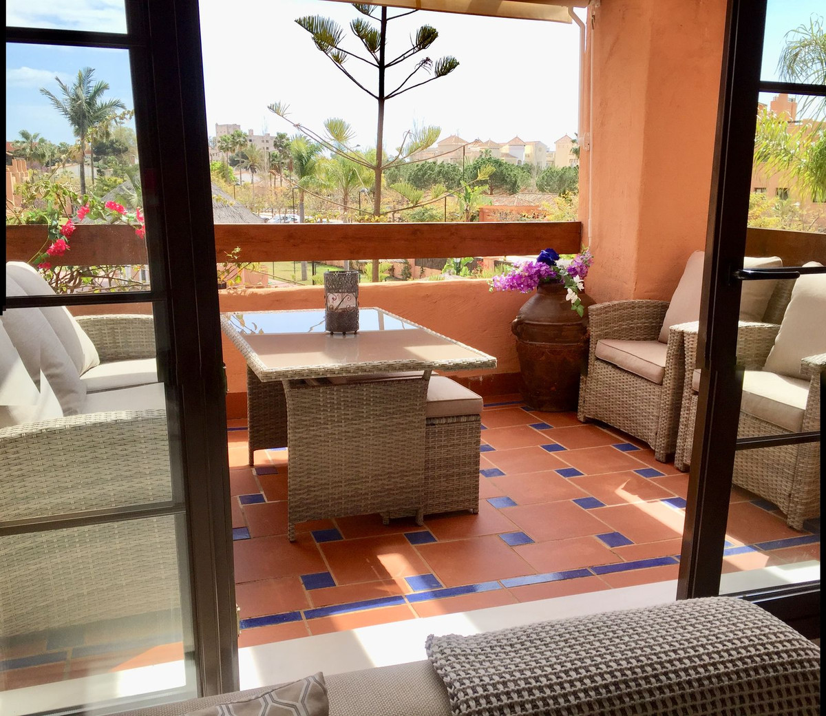 A beautifully located first-floor apartment in the highly sought-after Hacienda del Sol development. The apartment features a spacious master bedroom with an en-suite bathroom, a second bedroom, and a family bathroom. The terrace overlooks one of the stunning swimming pools, making it an ideal holiday home. The sale also includes a parking space and a storage room.