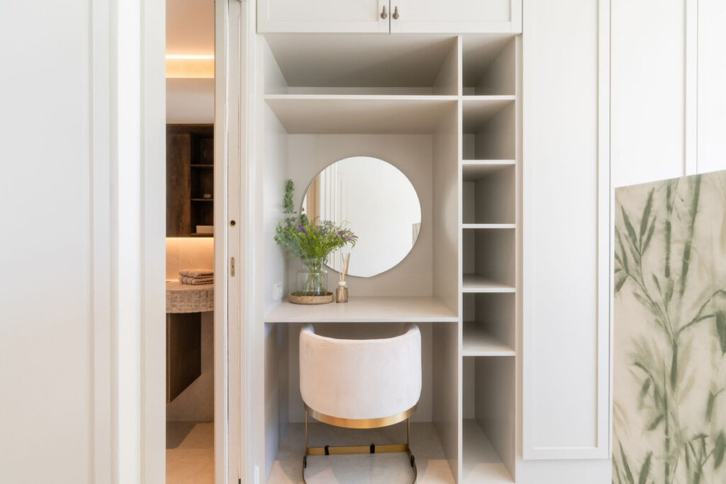 The upper level hosts the master suite, complete with a private bathroom and direct access to a spacious terrace with beautiful views. Two additional ensuite bedrooms on this floor provide comfort and privacy — one with its own terrace and the other with a charming French balcony.