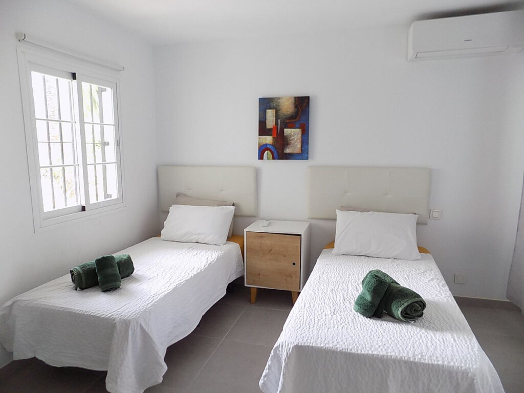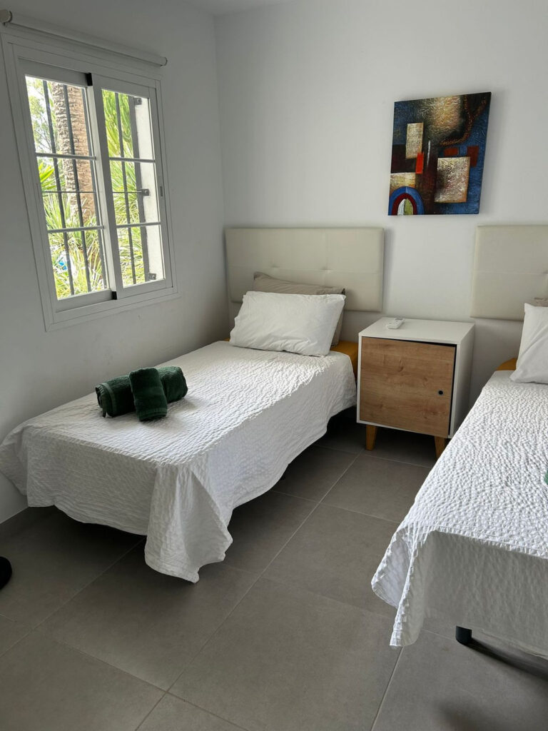 This beautifully renovated townhouse is located in Mijas Golf within walking distance to all amenities and public transport. It is set in the tranquil gardens of a gated, secure community.There are two floors plus a large basement which has also been renovated to include a new bathroom, lounge and office. On the ground floor, there is a modern kitchen, hallway with guest toilet and a lounge/dining room area that exits onto the stunning community gardens. On the upper floor, there are two spacious double bedrooms and two modern bathrooms. The sale includes all furniture, fixtures and fittings. It is well located with easy access to shops, bars and restaurants. Just outside the urbanisation there is a bus stop that takes you to Fuengirola and Enterrios. There are two hotels close by; Hotel Tamisa and the luxury La Zambra Hotel. In addition,there are two 18 hole golf courses and a driving range next to the property that includes an excellent bar/restaurant which is open all day to the general public. The house is ideal for use as a holiday home or long/short term rental investment. 7 minutes to La Cala de Mijas. 5 minutes to Fuengirola. Viewings can be at short notice if required. Open to offers.