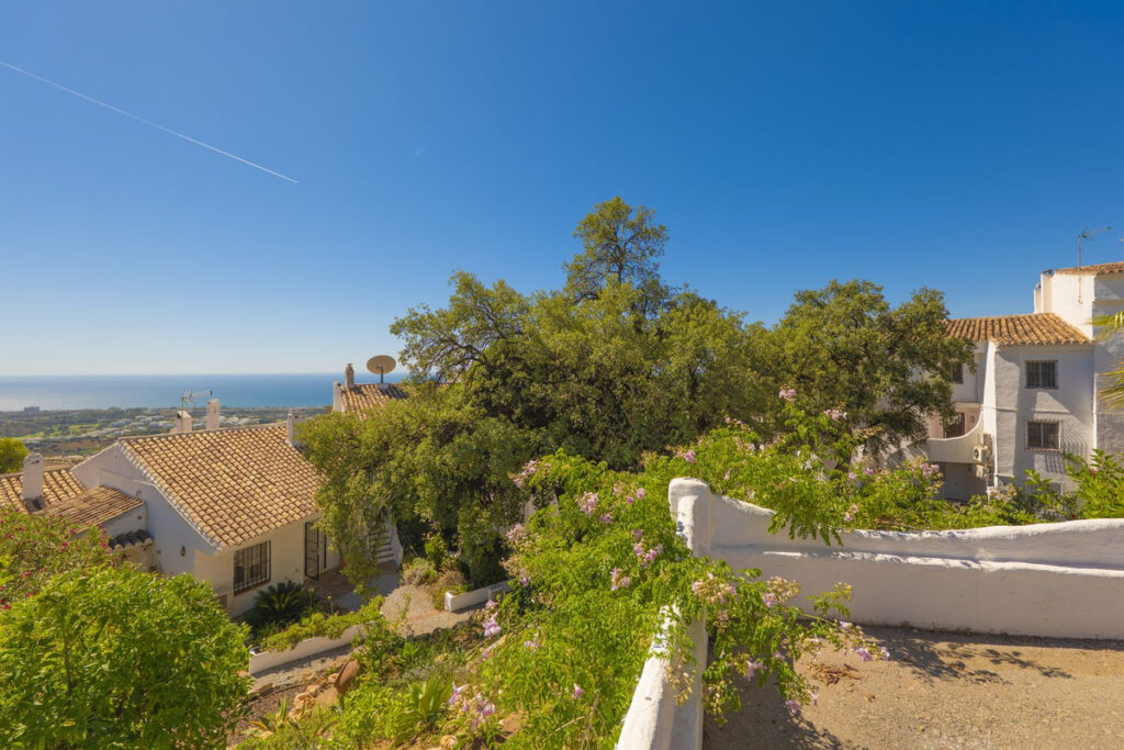 Charming two bedroom and two bathroom apartment boasting awesome sea views from its South facing beautiful terrace. Nestled in an Andalusian style urbanization with an enviable location at Las Lomas de Los Monteros, hence its stunning sea and coastal views and even the African littoral. This complex of whitewashed homes of a delightful rustic style comprises manicured gardens and a pool area with the mentioned jaw dropping views. The dwelling welcomes you with a distributor hall with the kitchen at the right followed by a complete bathroom; on the left side we find one bedroom, followed by the main bedroom with bathroom en suite. Continuing along the hall we reach the bright, as the whole property, living room with a distinguishable dining area and access to the cosy covered terrace and its enchanting views to the Marbella coast. A stylish home properly improved along the years with evidences of the improvements such as cladding, flooring, reformed bathrooms, fully fitted and equipped kitchen with first line appliances, A/C hot and cold, besides, an underground storage-cellar amounting 28sqm … a wise first dwelling option or holiday home, surrounded by nature and forests oozing discretion, privacy and tranquility as its main features … Come and check for yourself and you won't regret when you breathe and check the quiet oasis in which the property is located.