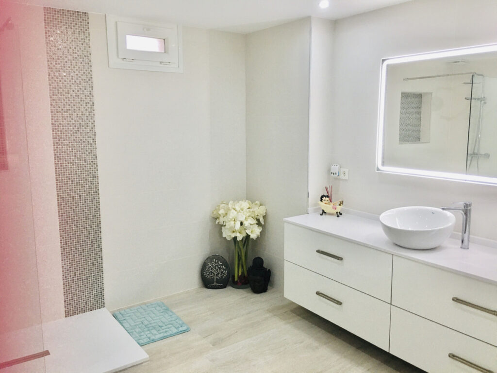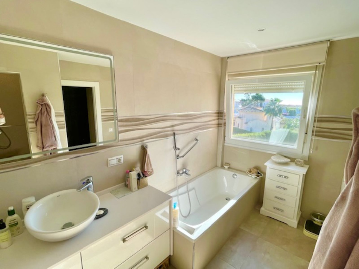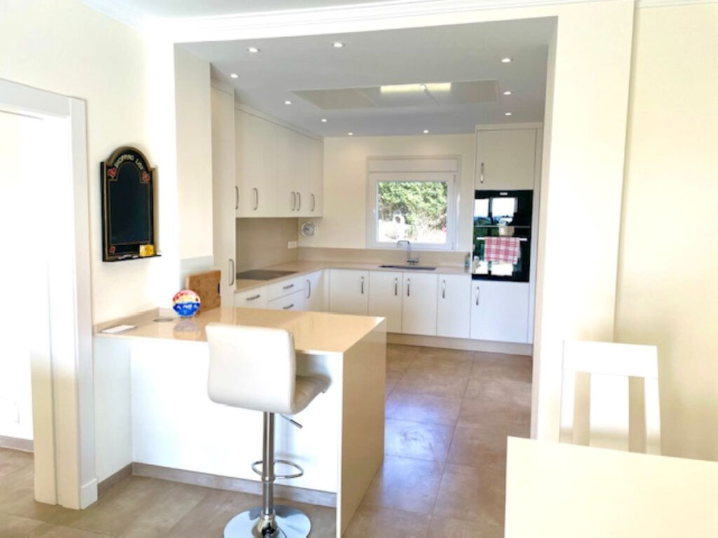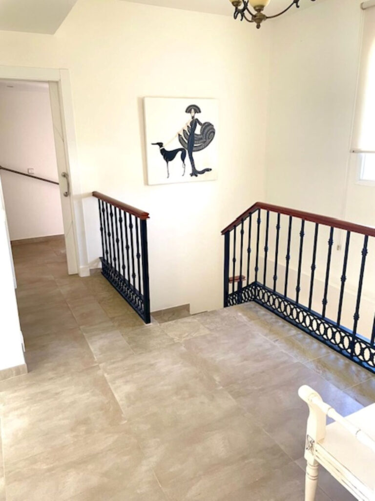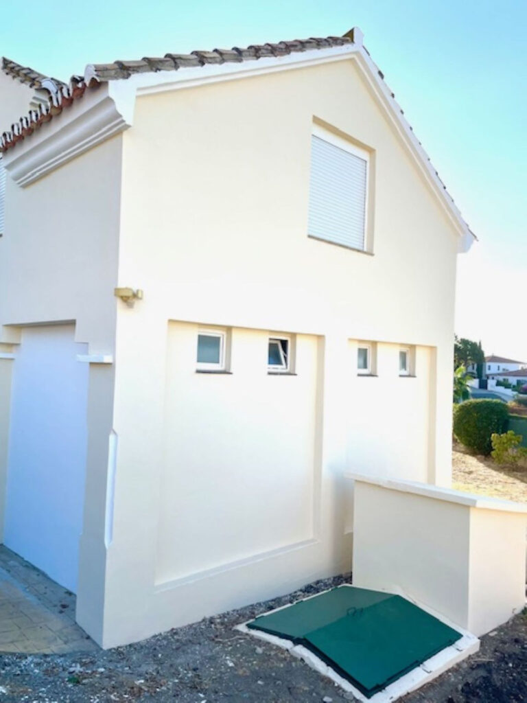 This delightful detached villa has recently been subject to extensive renovation throughout. The main house has 4 bedrooms, together with its OWN self-contained 1-bedroom apartment on the lower ground floor, with the benefit of its own entrance. The main house comprises as follows. There is one bedroom on the ground floor, together with its own guest toilet. In addition, this bedroom has access to the main terrace with sea views. On the upper level, you have three bedrooms, the largest of which is approximately 30M2 with a feature wooden vaulted ceiling and lovely views looking out across the sea to Gibraltar. The second bedroom has a small glassed terrace and again views to Gibraltar. There is a separate shared shower room. The third bedroom has a walk-in wardrobe plus extra built-in wardrobes and its own en-suite bathroom with an additional shower. There is also another high wooden vaulted ceiling and this room also has access to stunning sea views and its own sunny secluded terrace.