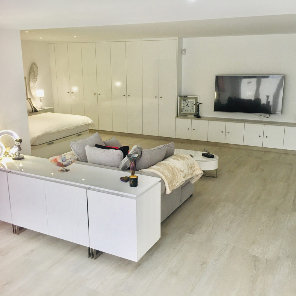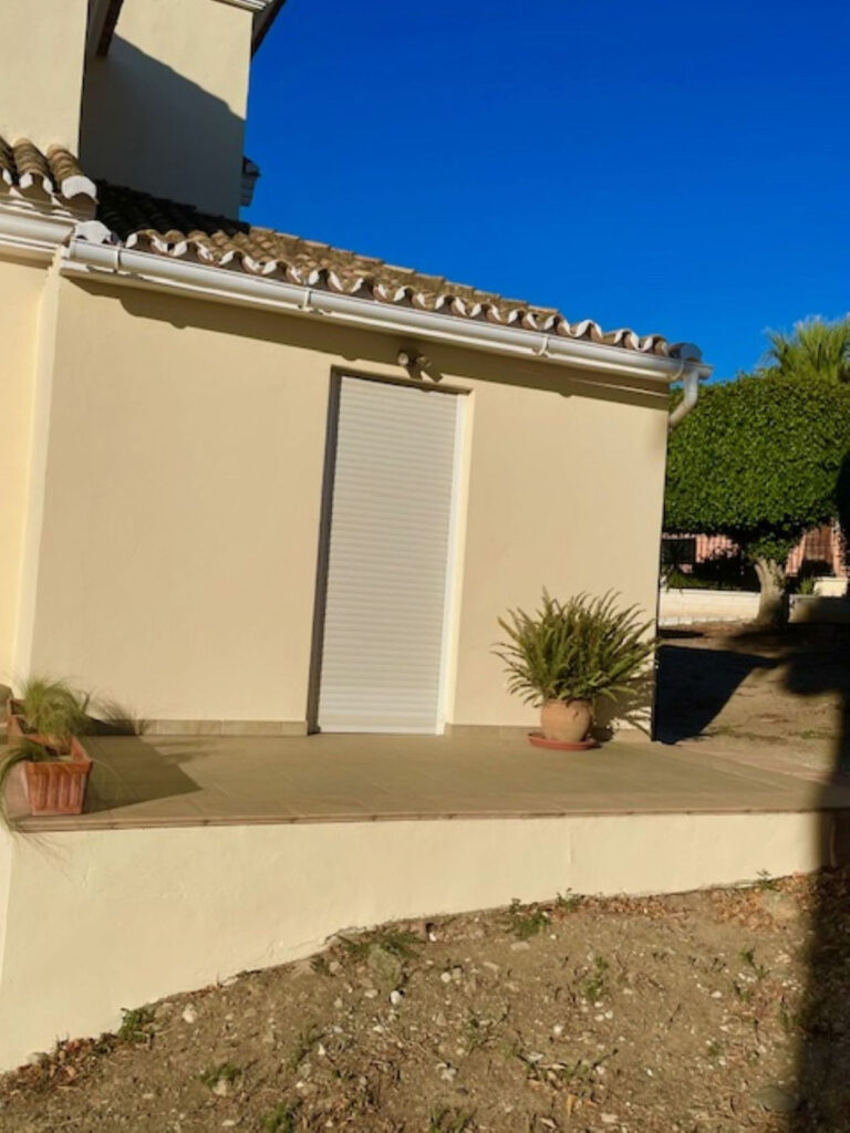 Below the house, there is a separate, self-contained apartment of 108.22 m² with its own access, featuring a large kitchen, a walk-in shower room, an open-plan living area, and a bedroom with a walk-in wardrobe, providing plenty of extra built-in storage. The south facing apartment has bi-folding doors onto a large private sun trap terrace. The property has a license for a pool, so the process for installing one will be straightforward. There is a large double garage at the front of the property, which the current owner uses as a large workshop/store room. It has been enclosed, but the front wall can be opened up easily. At the entrance to the house you have electric gates and parking for 3 to 4 cars inside the driveway way where a carport could be created if needed. The garden surrounds the detached villa and features some fruit trees and large hedges, providing total privacy. The garden is a blank canvass for the new owner to add their personal touches, especially if they are considering adding a pool. This is a rare first-class detached villa, set in its own quiet rural grounds of 1,034m2, stunning southerly sea views towards Africa and Gibraltar, yet only 6 6-minute drive from Estepona town and the delightful retreat of Laguna village. for the equestrian buyers, there are stables and riding in the immediate vicinity.