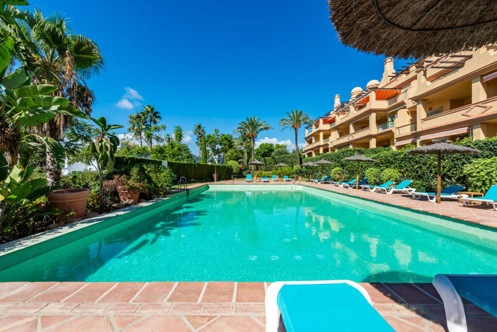 Four Seasons Flamingos is an exclusive, gated community set within the renowned Los Flamingos Golf Resort in Benahavís. Residents enjoy beautifully landscaped gardens, two impressive swimming pools (one heated), serene fountain features, and tropical greenery that create a calm, elegant atmosphere. The community also provides 24-hour security and concierge services for peace of mind.