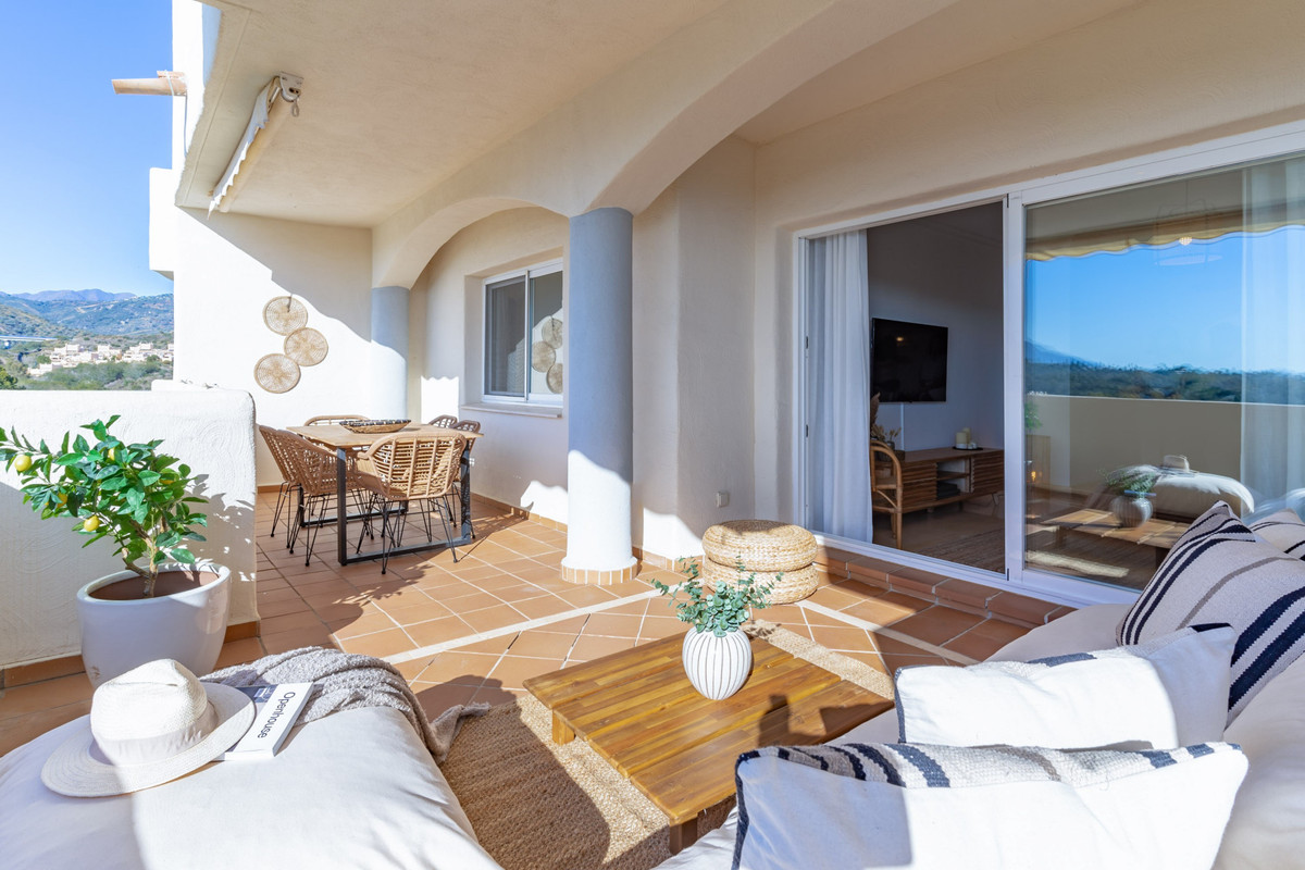 Bright and spacious 2-bedroom, 2-bathroom apartment in the exclusive gated community of Santa Maria Green Hills. It features a large living room with access to a generous terrace, enjoying open and lateral sea views.