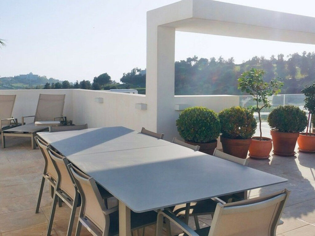 A rare opportunity to purchase a luxury penthouse in the sought-after La Alqueria area of Benahavís, offering unbeatable panoramic views of the Mediterranean Sea and surrounding golf courses. Located within a secure, boutique-style development, this elegant 3-bedroom, 2-bathroom property combines high-end finishes, spacious interiors, and resort-style amenities – perfect as a holiday home, full-time residence, or rental investment.