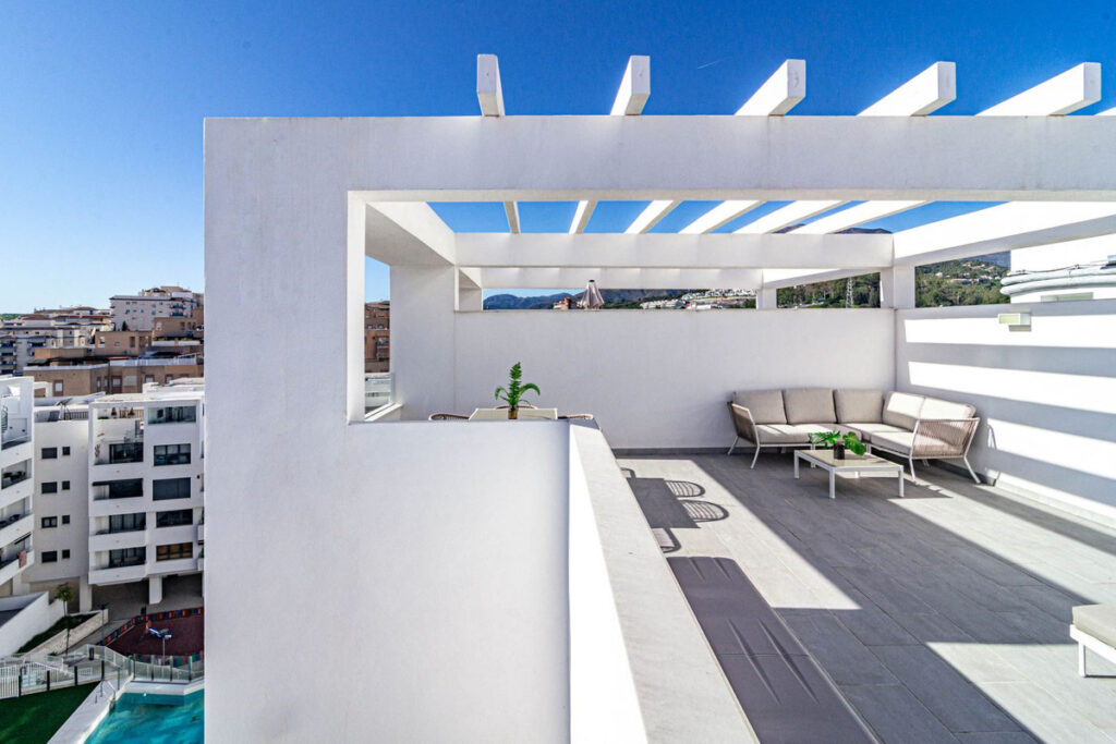 The penthouse enjoys pleasant views over the surroundings, giving it a bright and open feel. Estepona itself is known for its authentic Andalusian charm, with flower-lined pedestrian streets, reduced traffic in the center, and an inviting promenade along the beach that encourages walking and outdoor living. It’s a family-friendly town with several playgrounds close to the sea and an Old Town that has been beautifully restored.