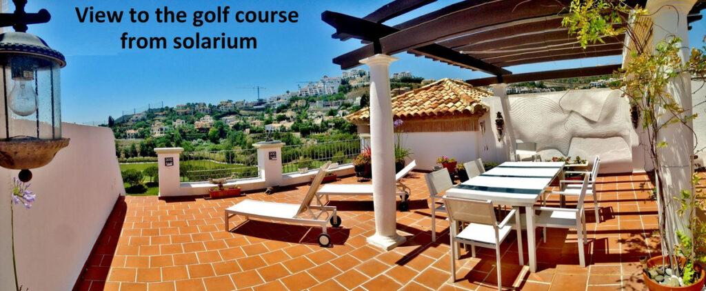Views from the front terrace and the solarium are south west across the 3rd & 4th fairways over the lake to the exclusive villas on the other side of the golf course.