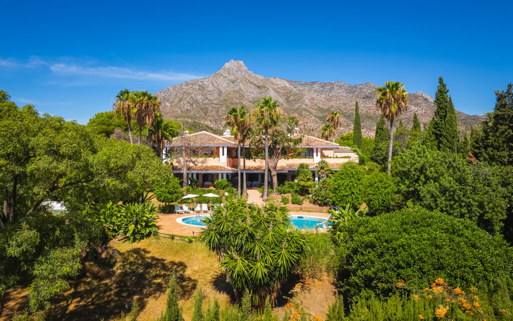 Situated within the prestigious enclave of La Capellanía, in the heart of Marbella’s Golden Mile, this magnificent Mediterranean-style estate rests on an expansive 7,505 m² plot, enjoying breathtaking views of the sea, the majestic La Concha Mountain, and the property’s own mature gardens. With a total built area of 1,811 m², the residence perfectly blends timeless Andalusian charm with generous proportions and refined elegance. It boasts 20 bedrooms in total, including guest and staff accommodation.