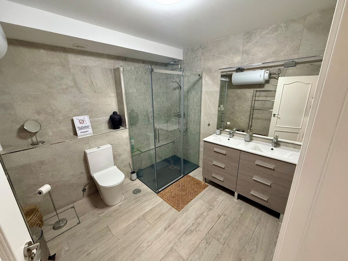 Upstairs, you’ll find two elegant double bedrooms, both with en-suite bathrooms. The master suite enjoys its own private terrace and direct access to a stunning rooftop solarium; perfect for sunbathing, barbecues, or simply soaking in the panoramic surroundings.